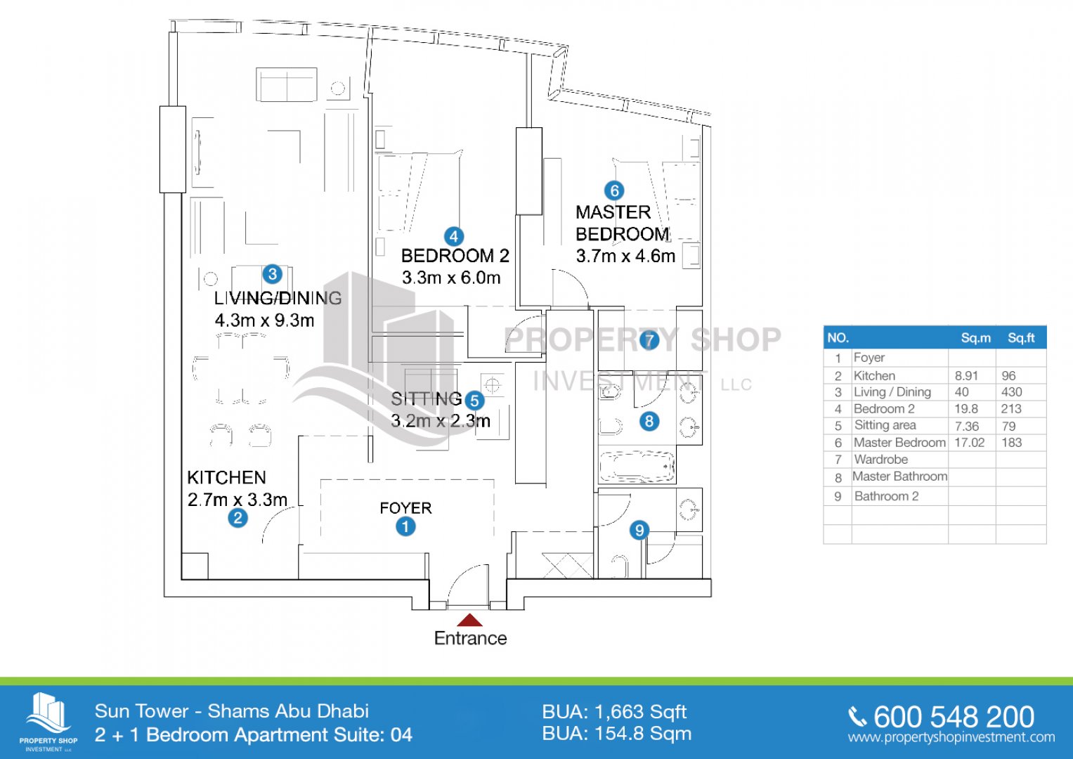 公寓 1 2 1 Mangrove View 1,102 平方英尺 AP250993 Sun Tower Al Reem Island