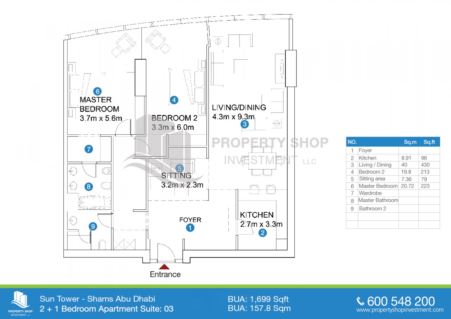 公寓 2 3 1 城市景观 1,317 平方英尺 AP5803 Sun Tower Al Reem Island