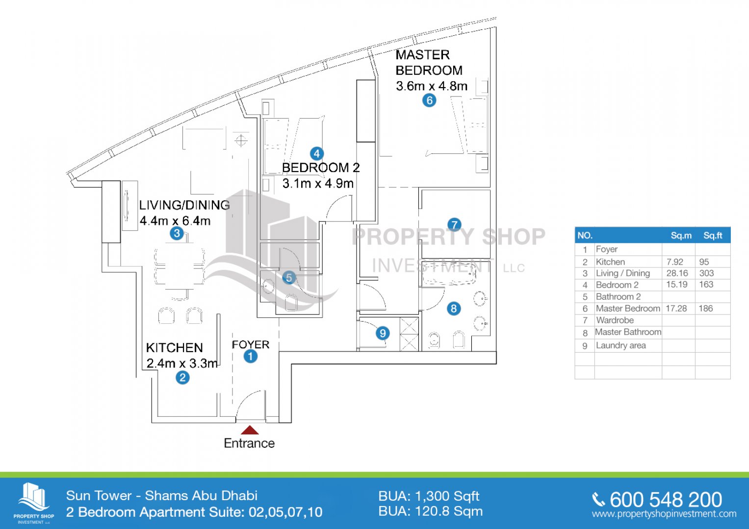 Floor plan of  Sun Tower 2 2 张床 1300 - - 1 - 1