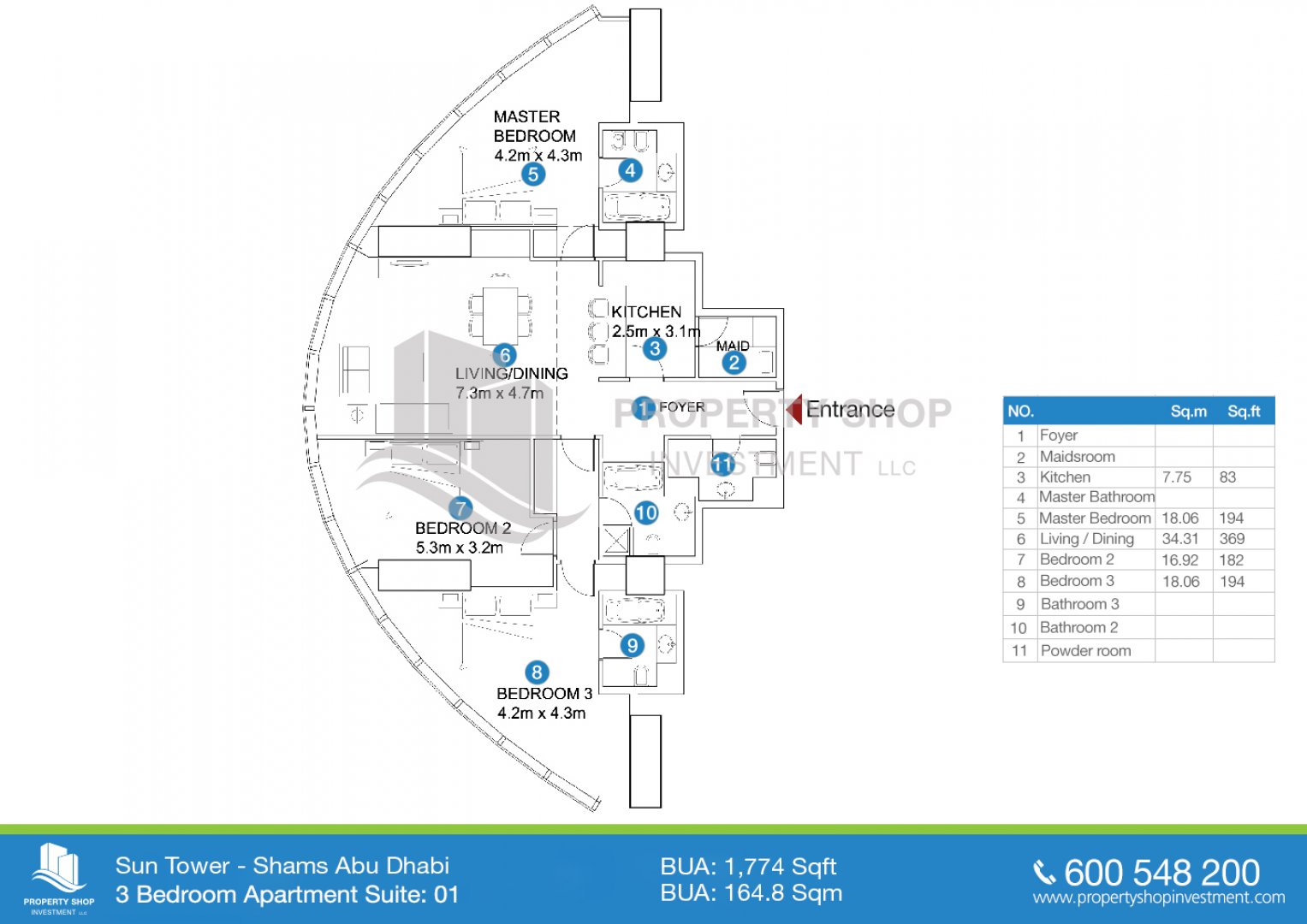 Floor plan of  Sun Tower 3 3 张床 1774 - - - 1 2