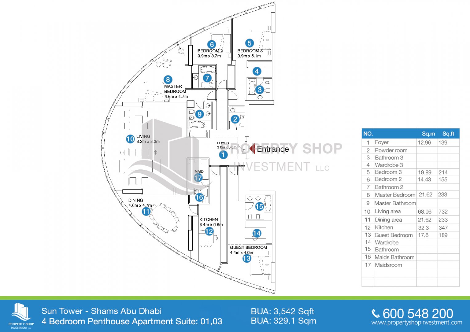 Floor plan of  Sun Tower 4 4 张床 3542 - - - 1 2