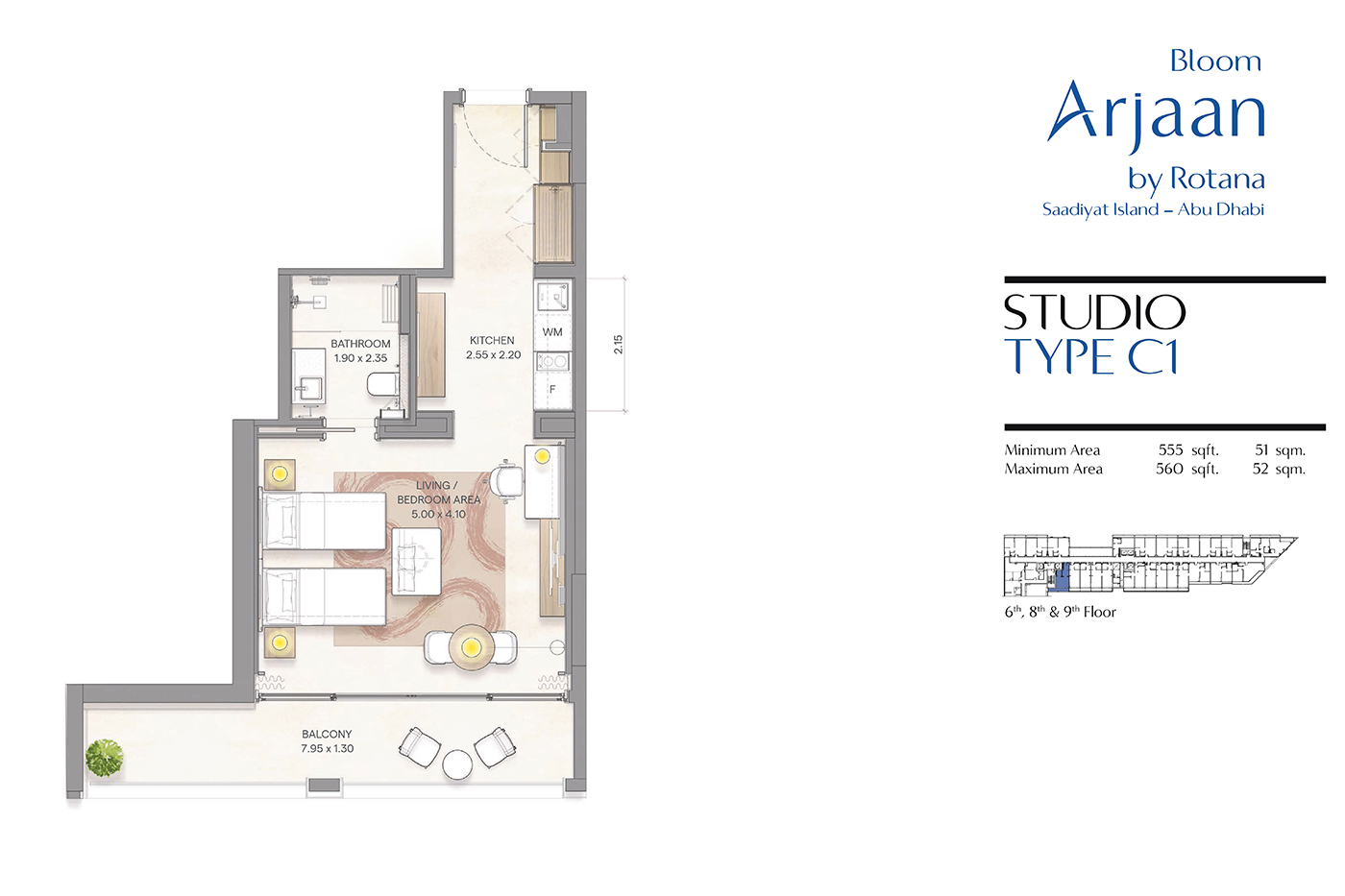 Floor plan of  Bloom Arjaan - Studio-Type-C1 560 - 1 - - -