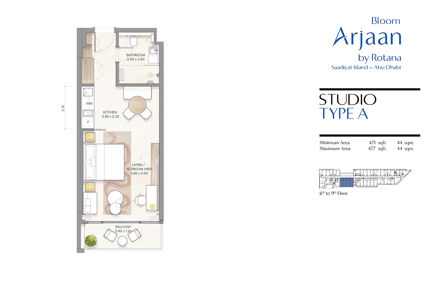 Floor plan of  Bloom Arjaan - Studio-Type-A 477 - 1 - - -