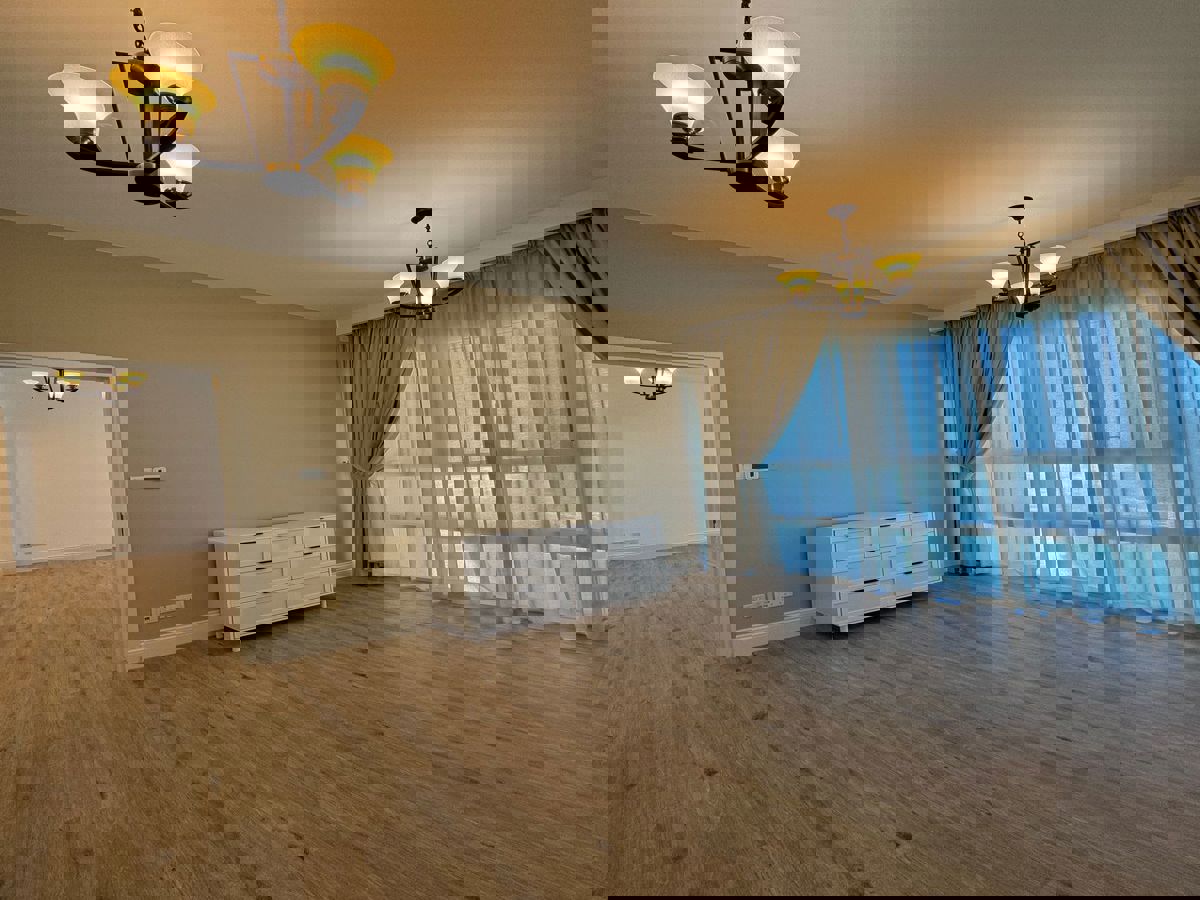 Fully upgraded one bedroom apartment at Horizon Tower A. Open kitchen with sea view and partial Zayed Museum view.
