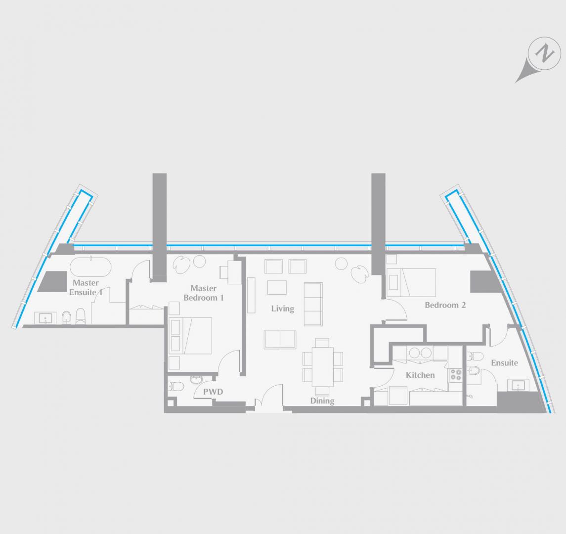 Floor plan of  ETIHAD TOWERS 2 2 Betten 1311 - - - - -