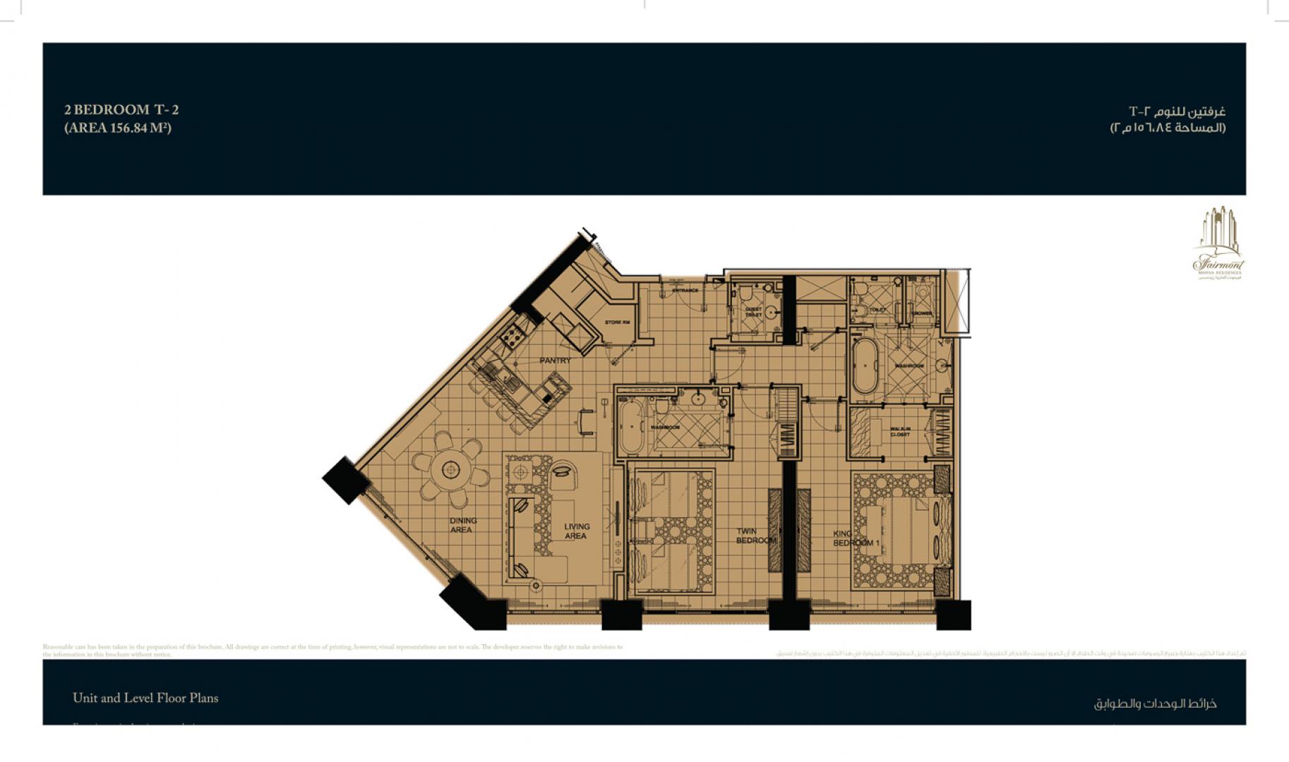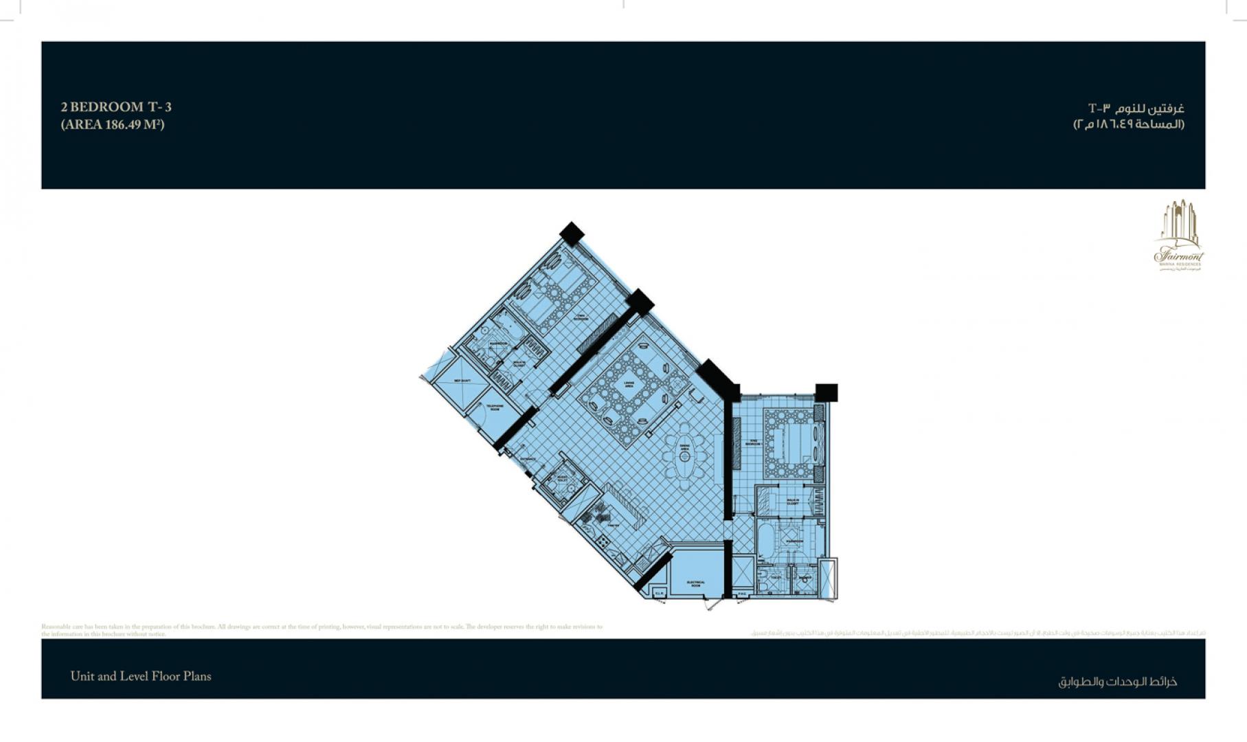 Floor plan of  Fairmont Marina Residence 2 2 Beds 1679.17 - - - - 1