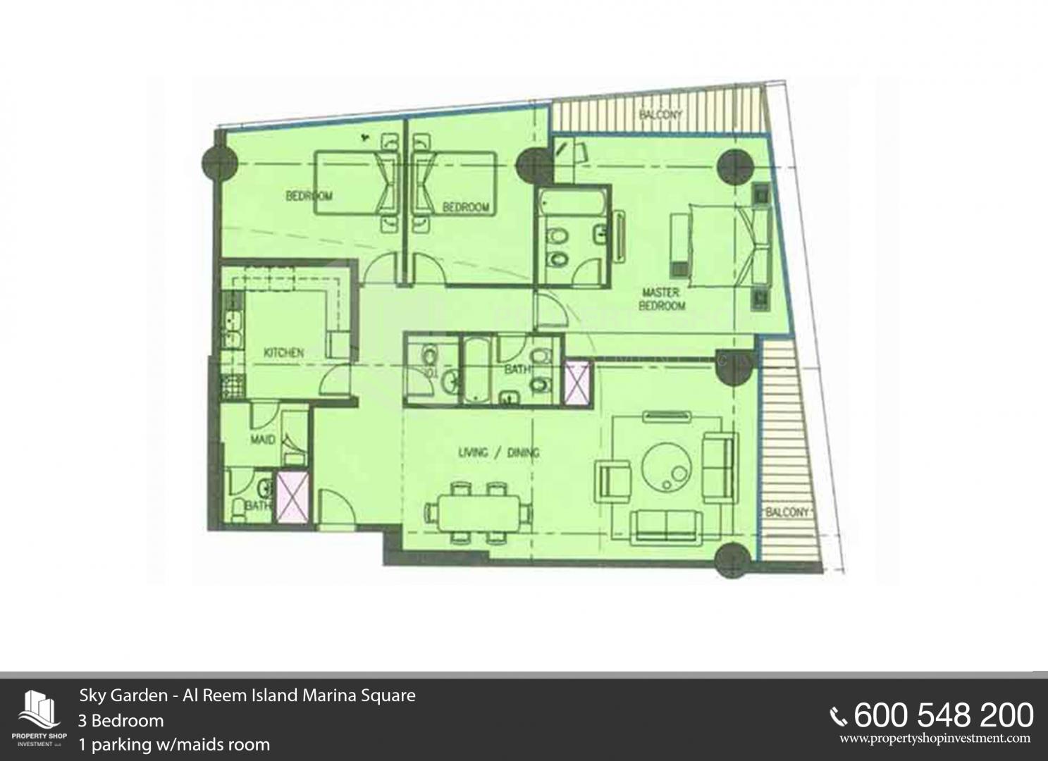 Floor plan of  Sky Gardens Tower 3 3 Beds - - - - 1 -