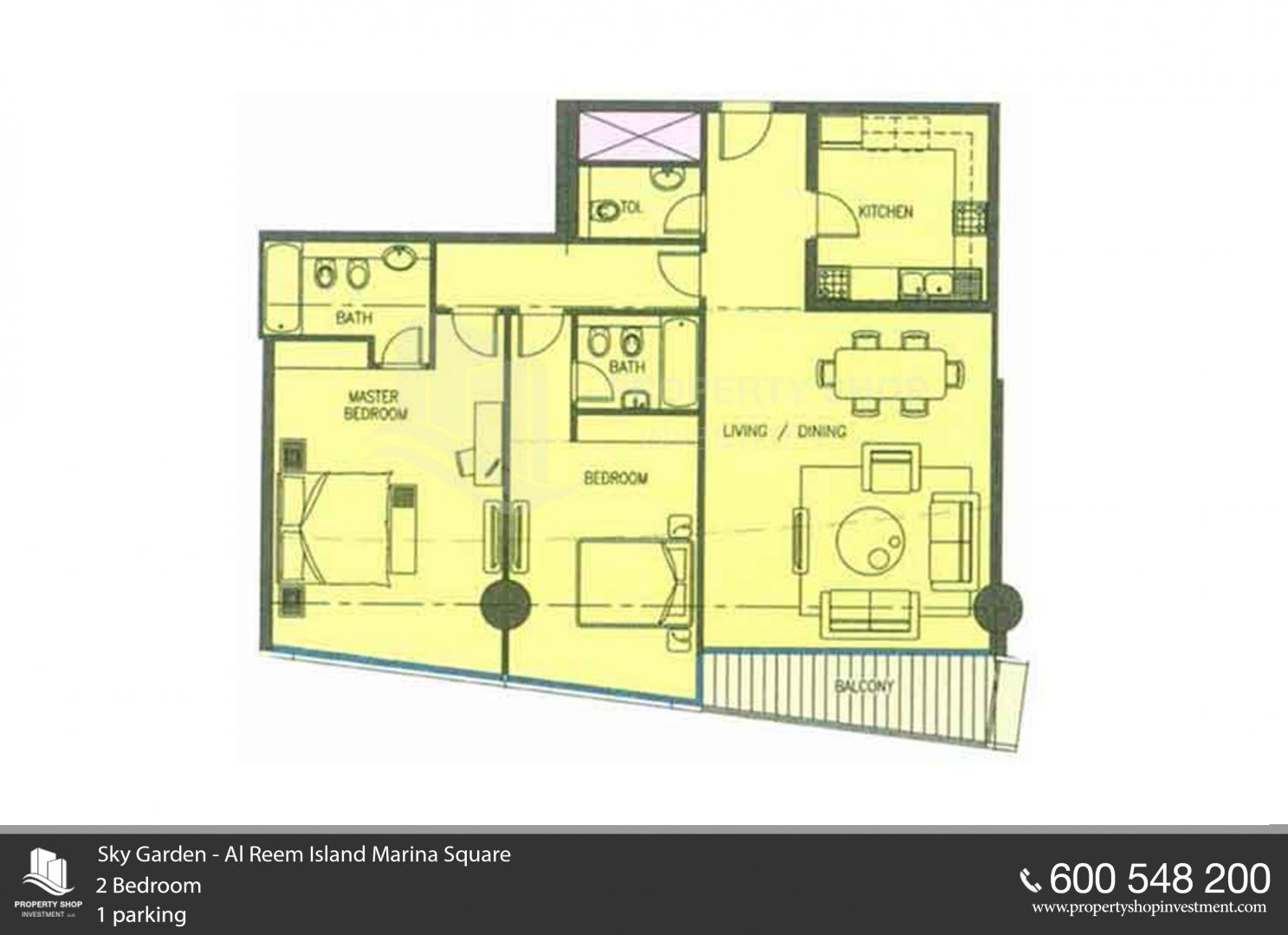 Floor plan of  Sky Gardens Tower 2 2 Beds - - - - 1 -