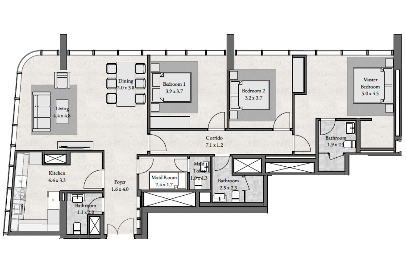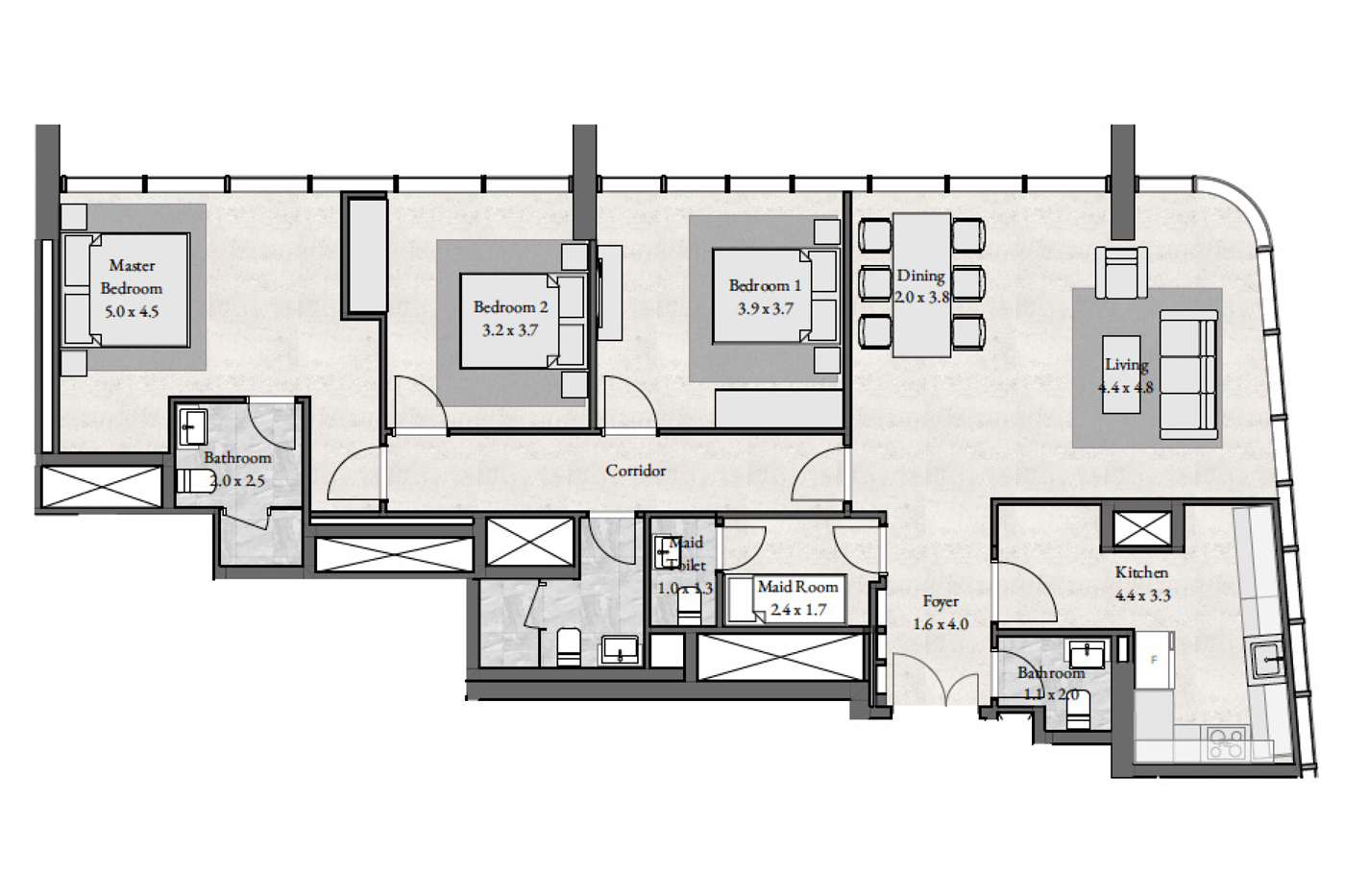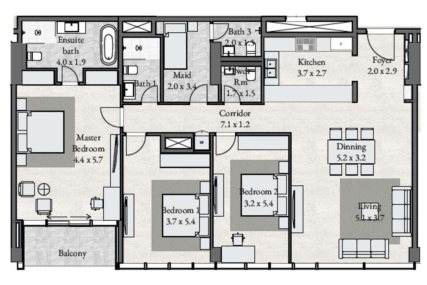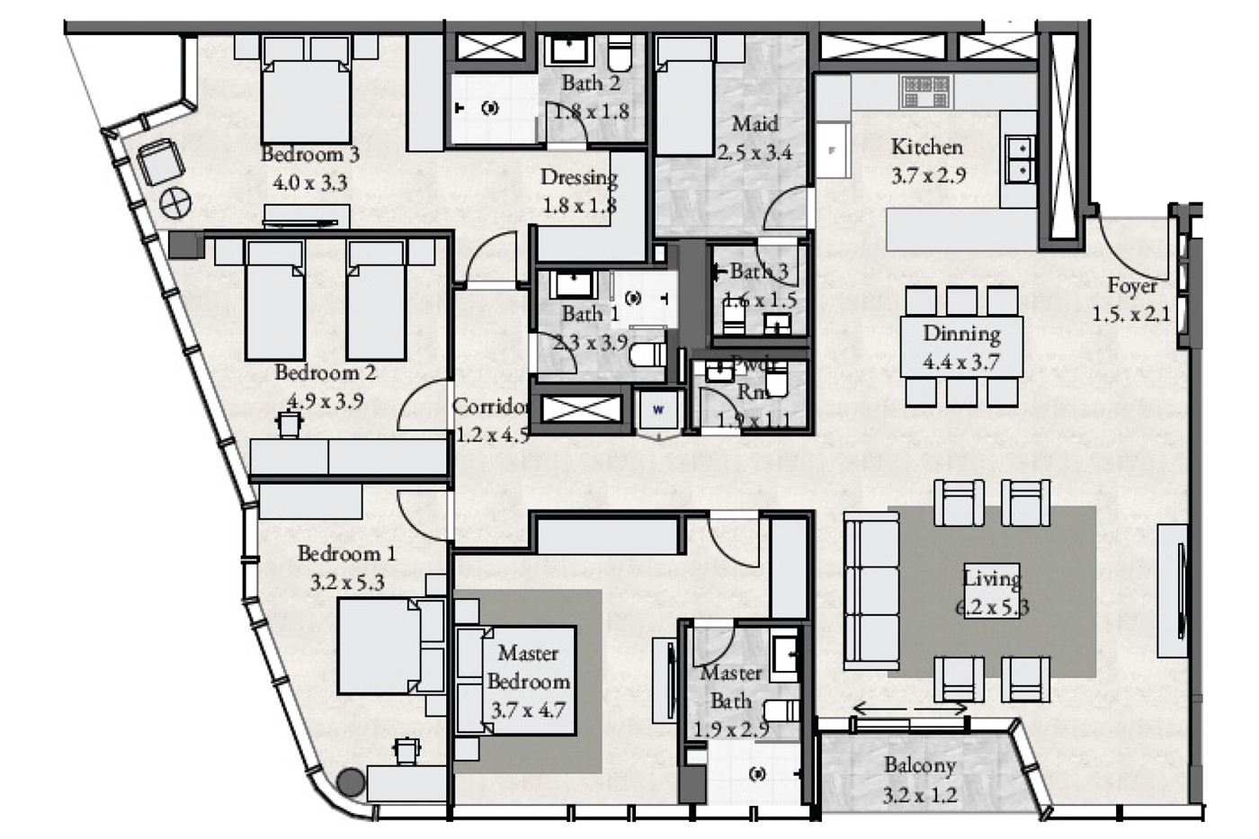 Floor plan of  Radiant Bay 3 3 Beds 1865 - - - - -