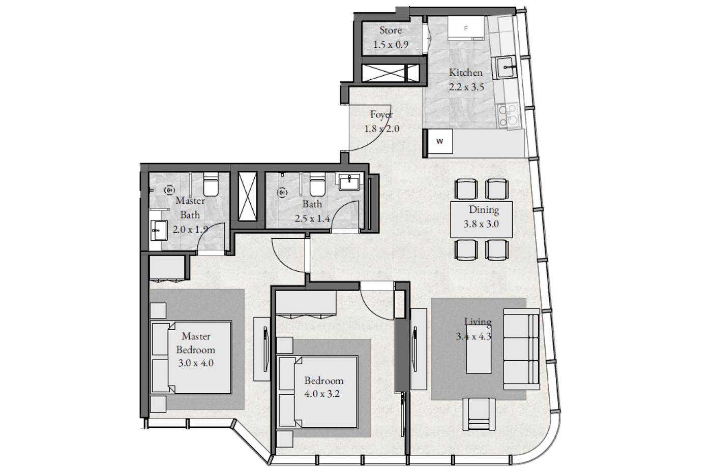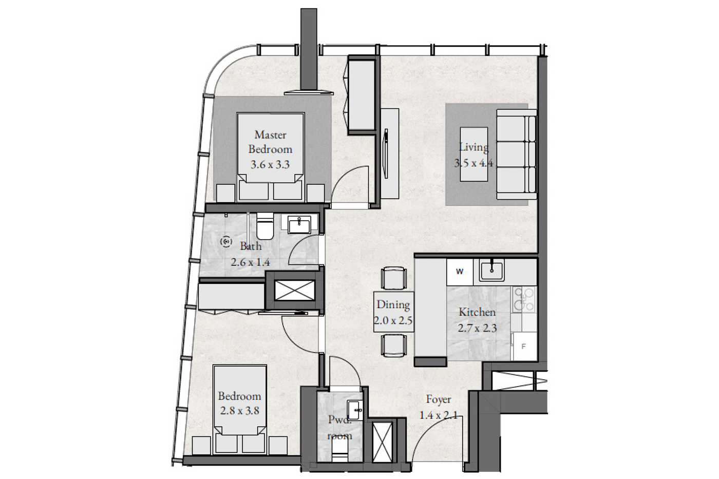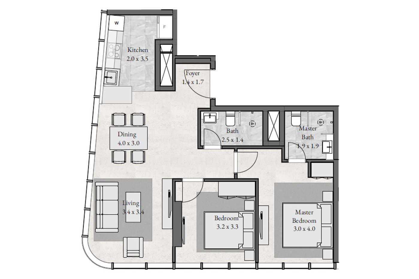 Floor plan of  Radiant Bay 2 2 Beds 844 - - - - -