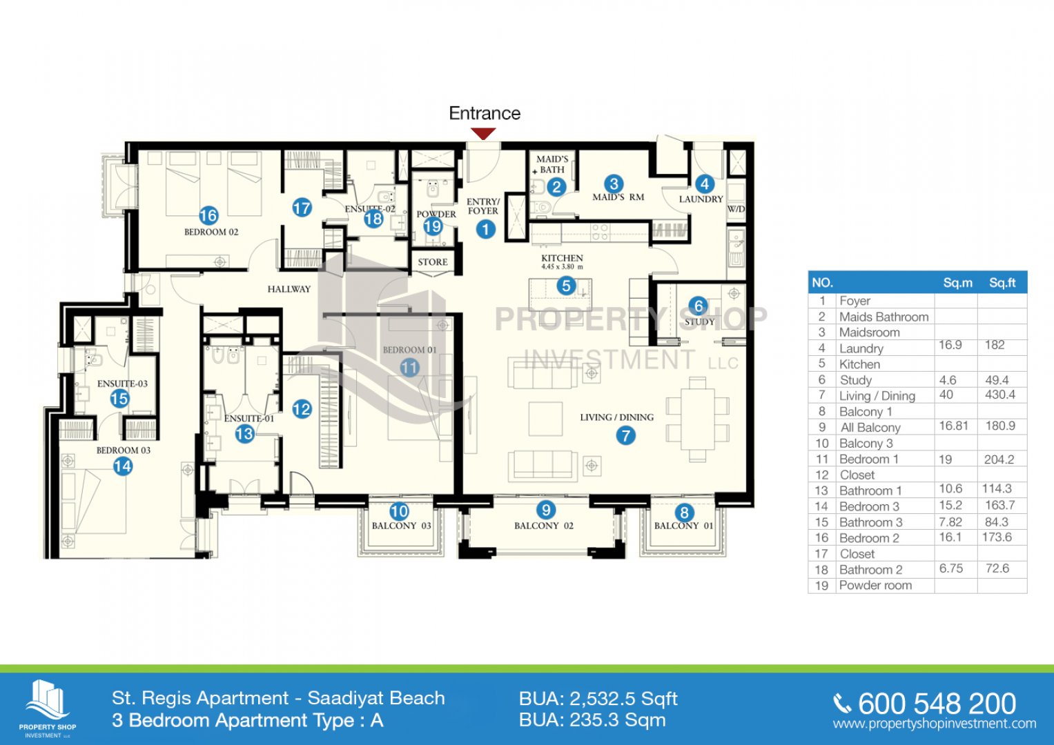 Floor plan of  St. Regis Residences 3 A 2532.5 - - 1 1 2