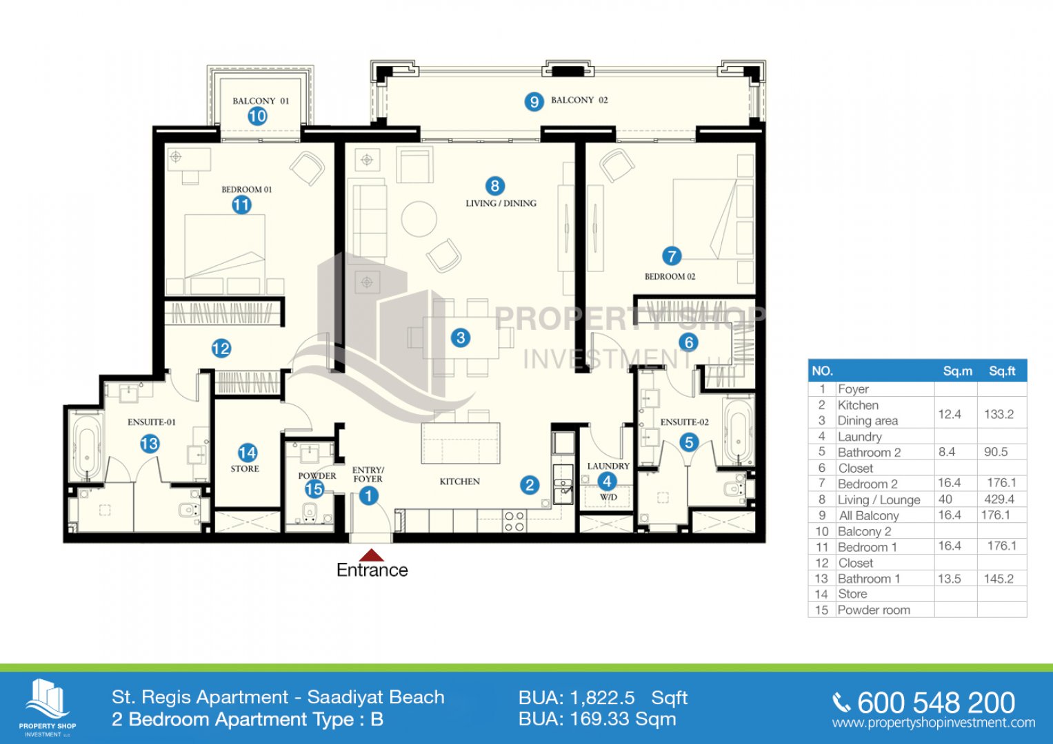 Floor plan of  St. Regis Residences 2 B 1822.5 - - 1 - 1