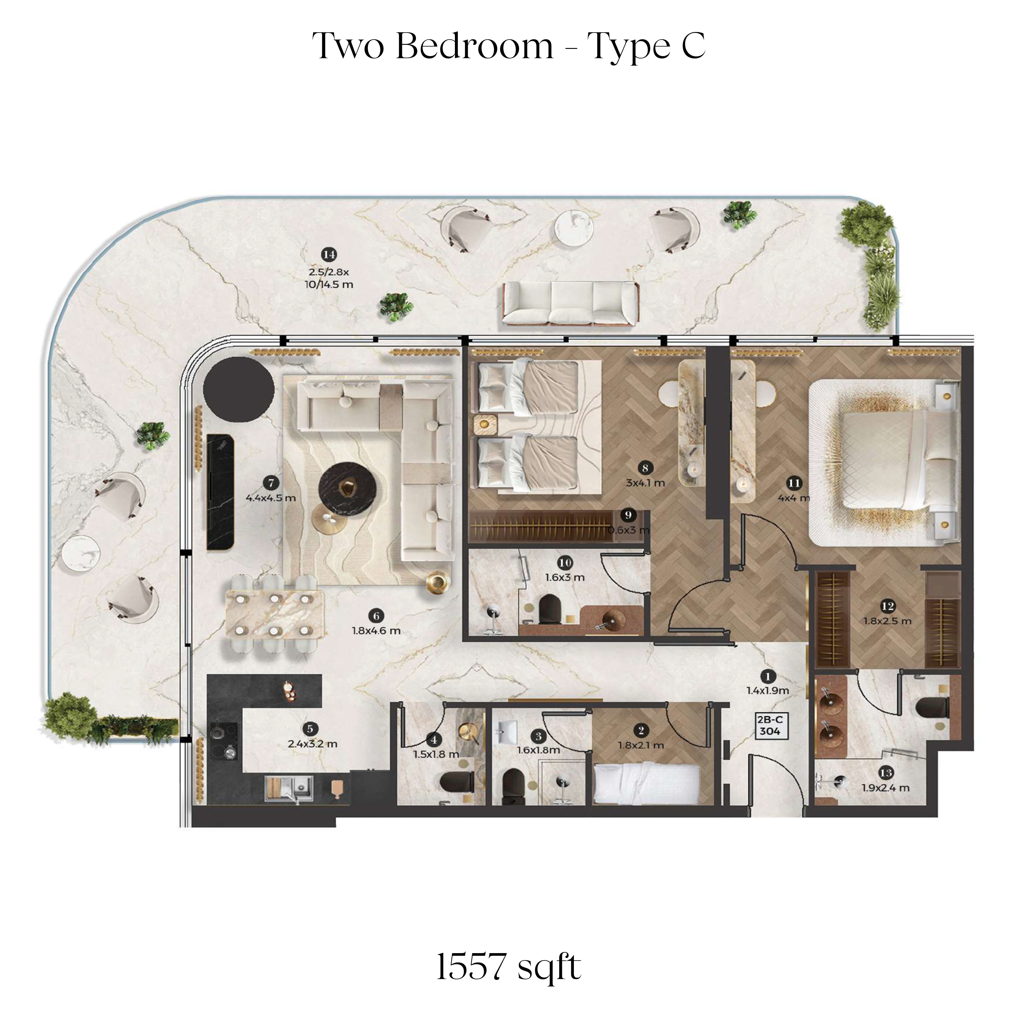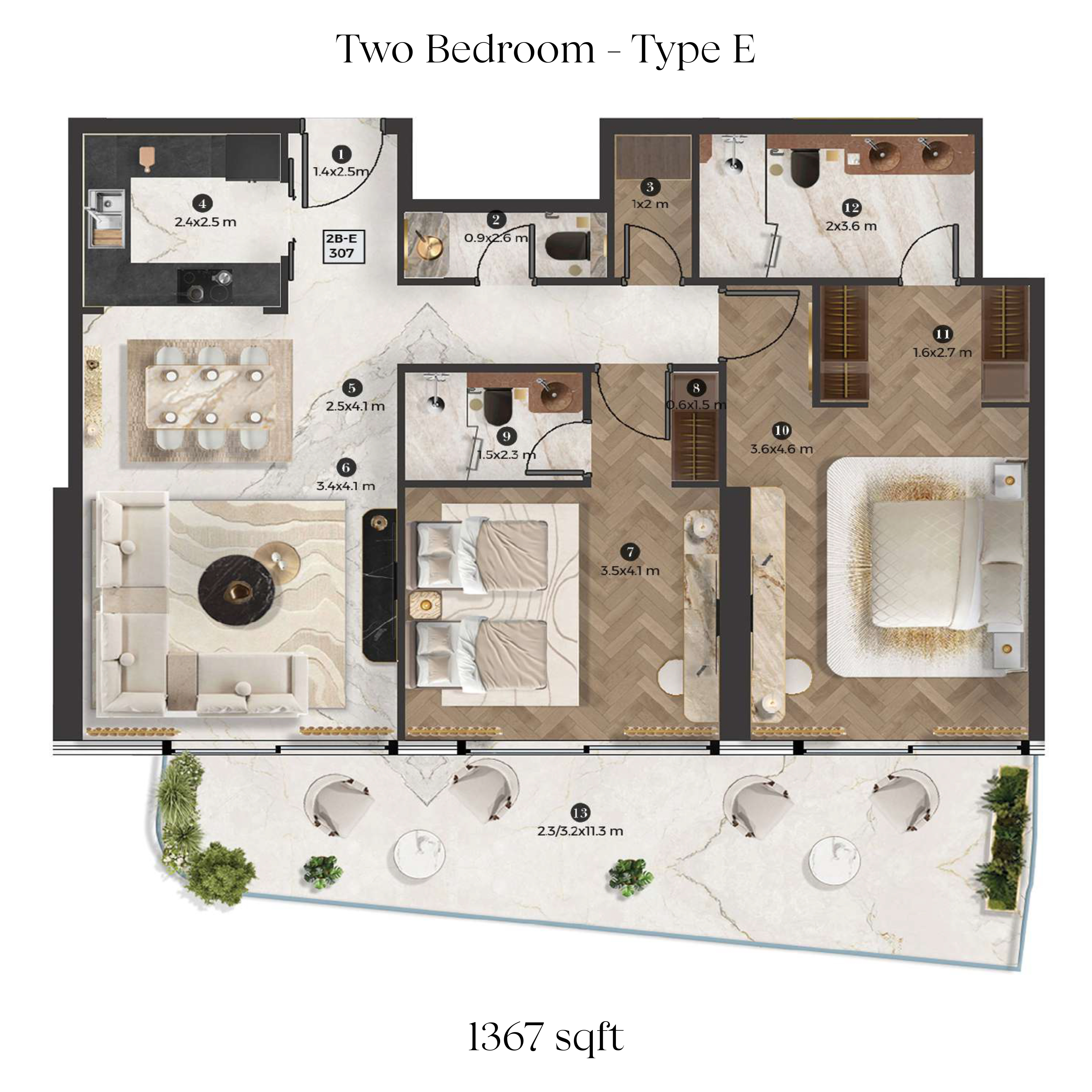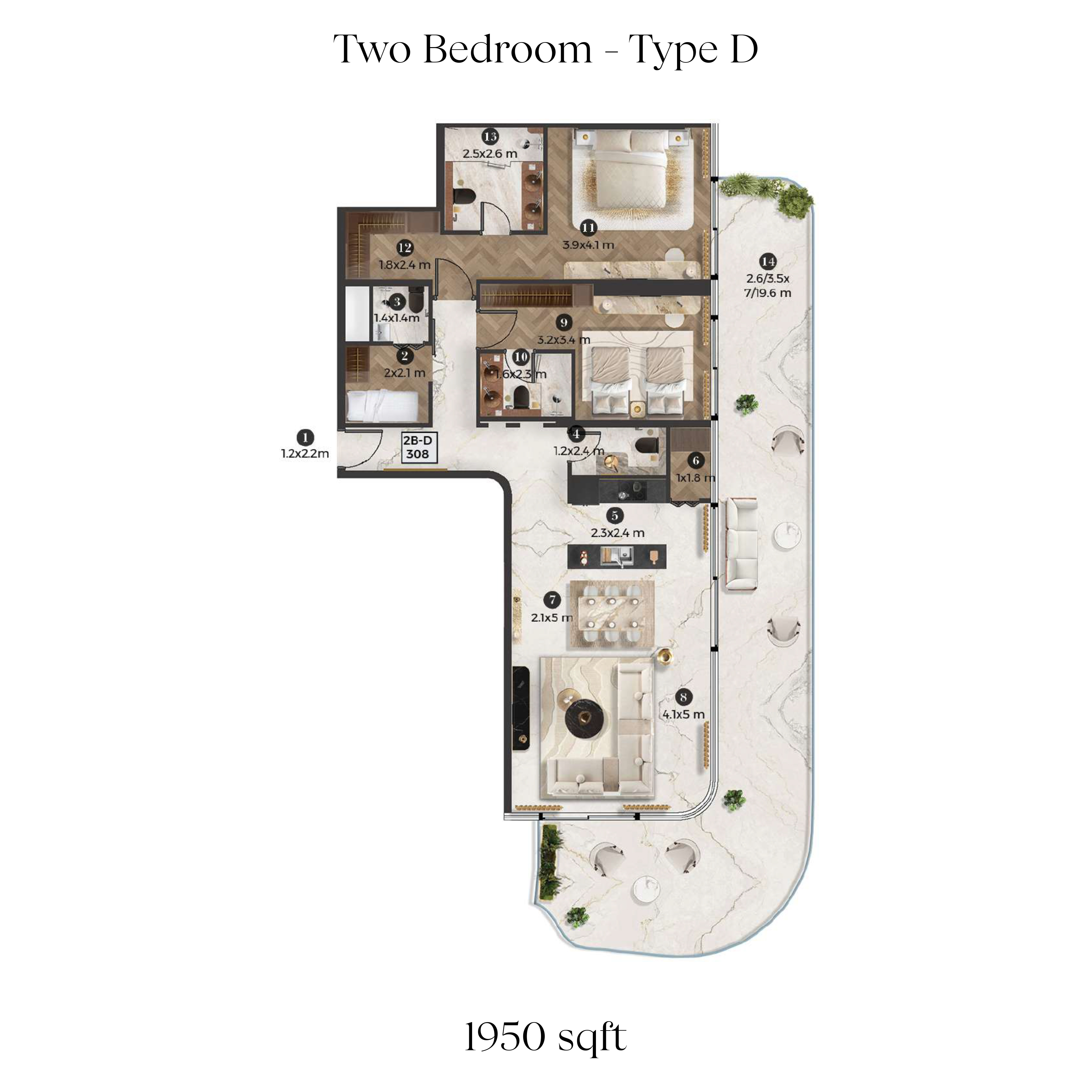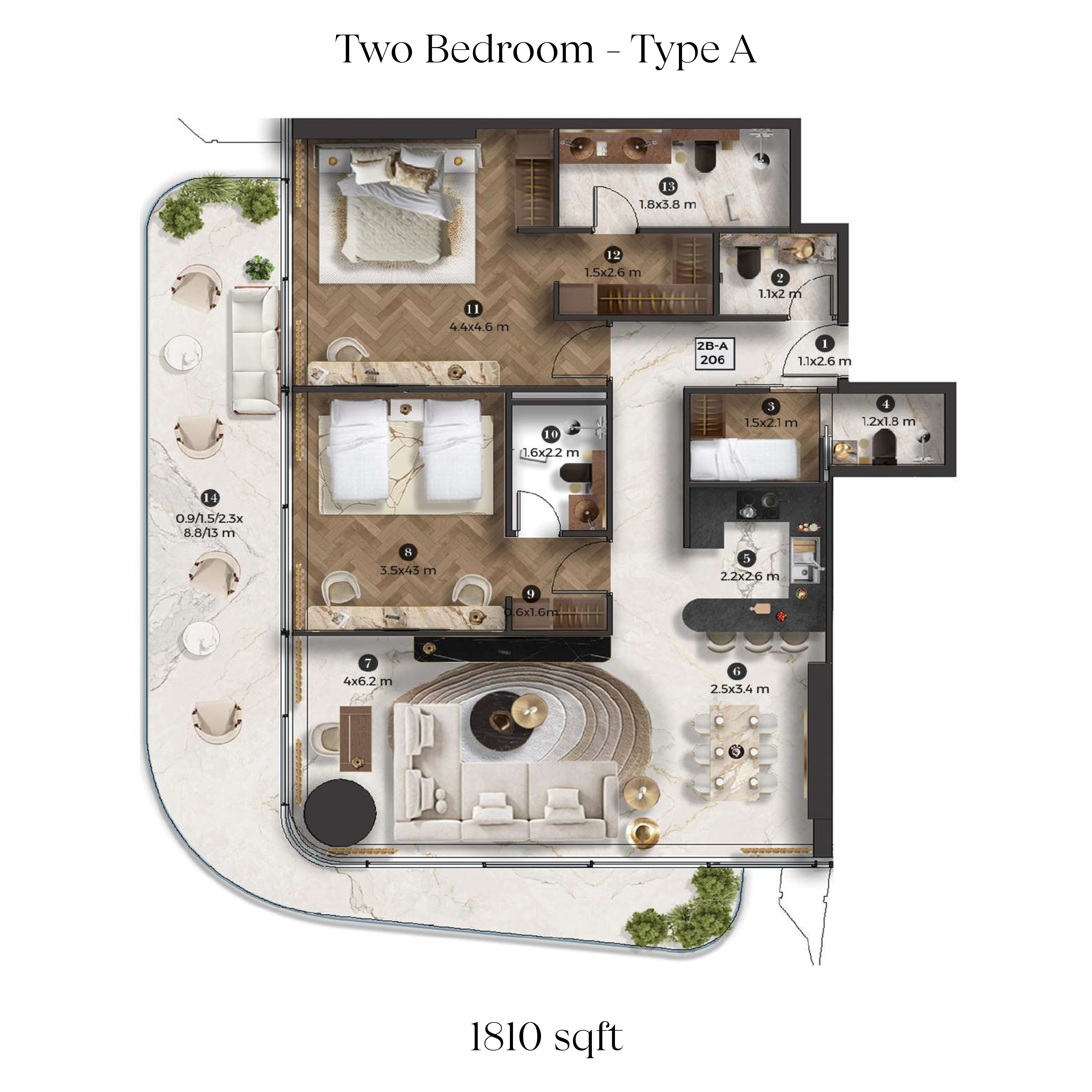 The property size in Stellar By Elie Saab 676 - 1950 Sqft