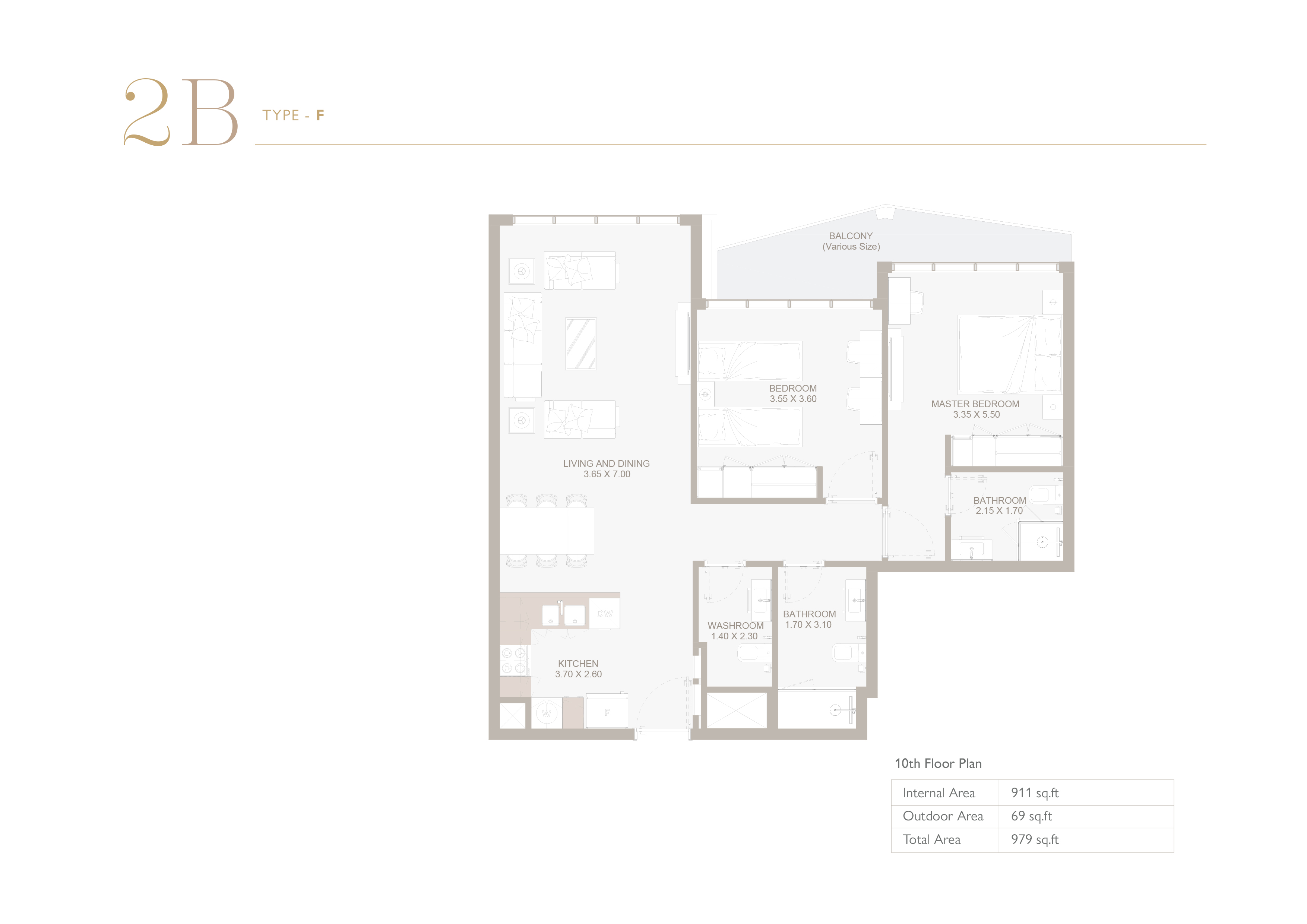 Floor plan of  Perla 3 2 2 Beds 979 - - - - -