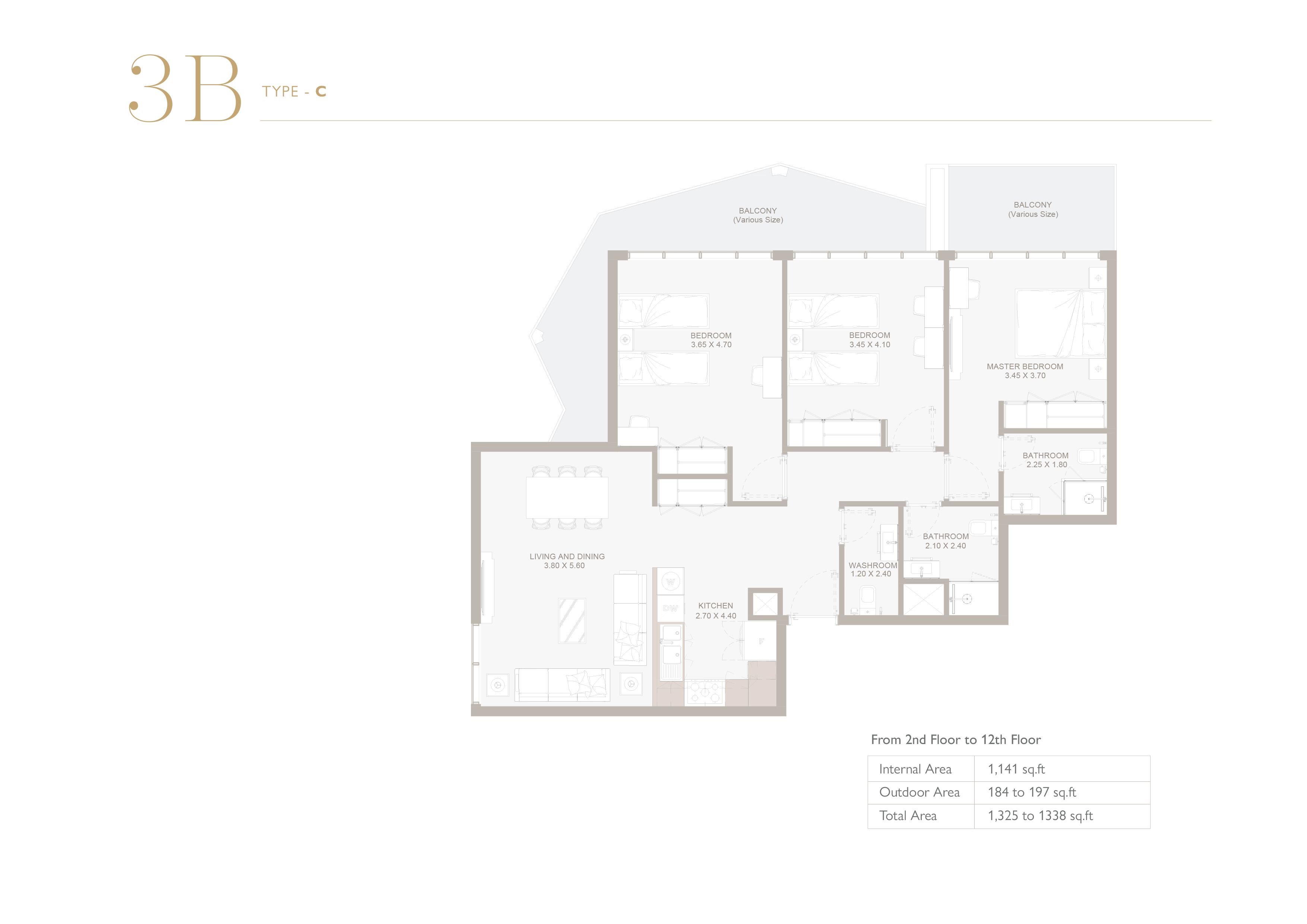 Floor plan of  Perla 3 3 3 Beds 1338 - - - - -
