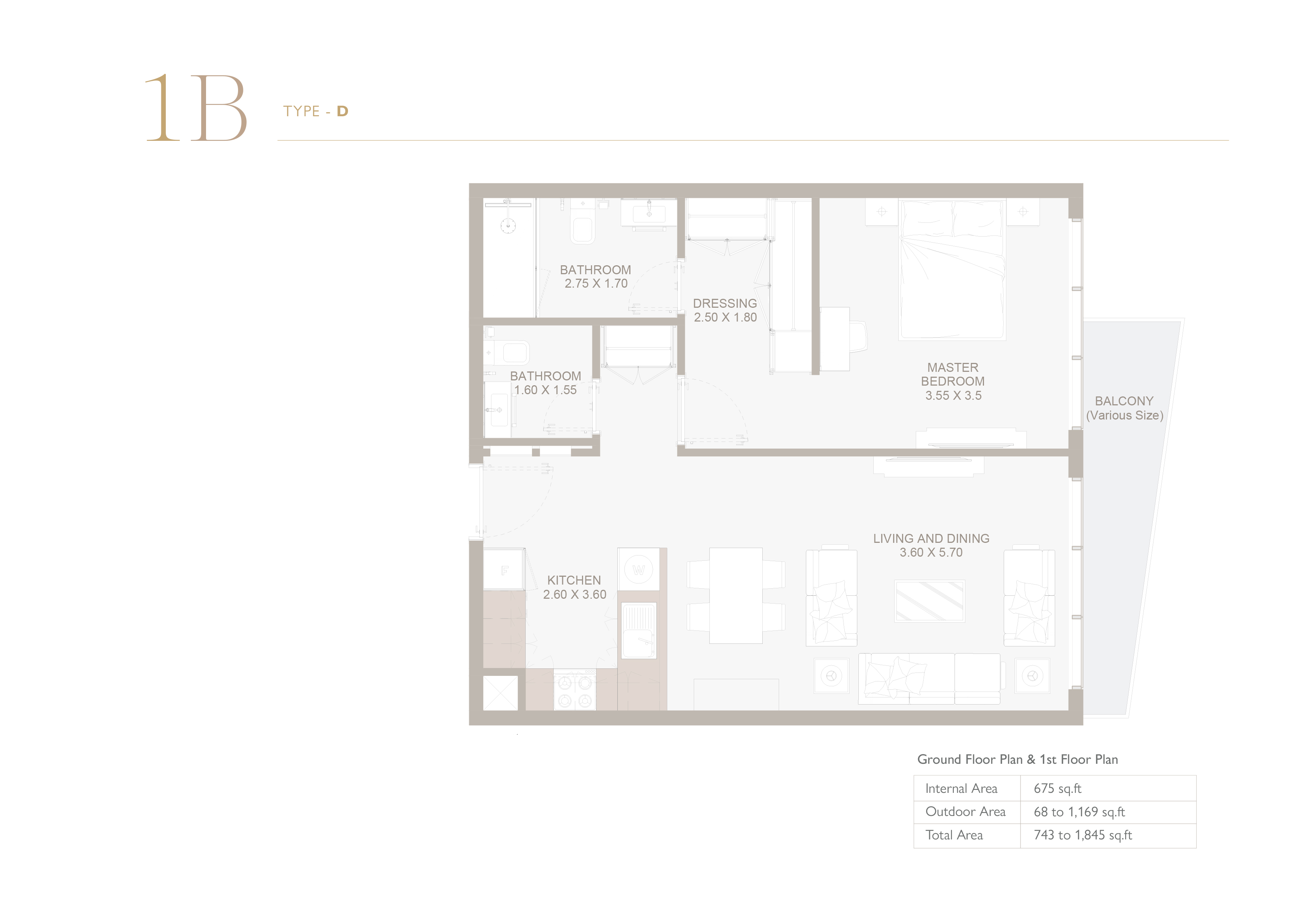 Floor plan of  Perla 3 1 1 Beds 705 - - - - -