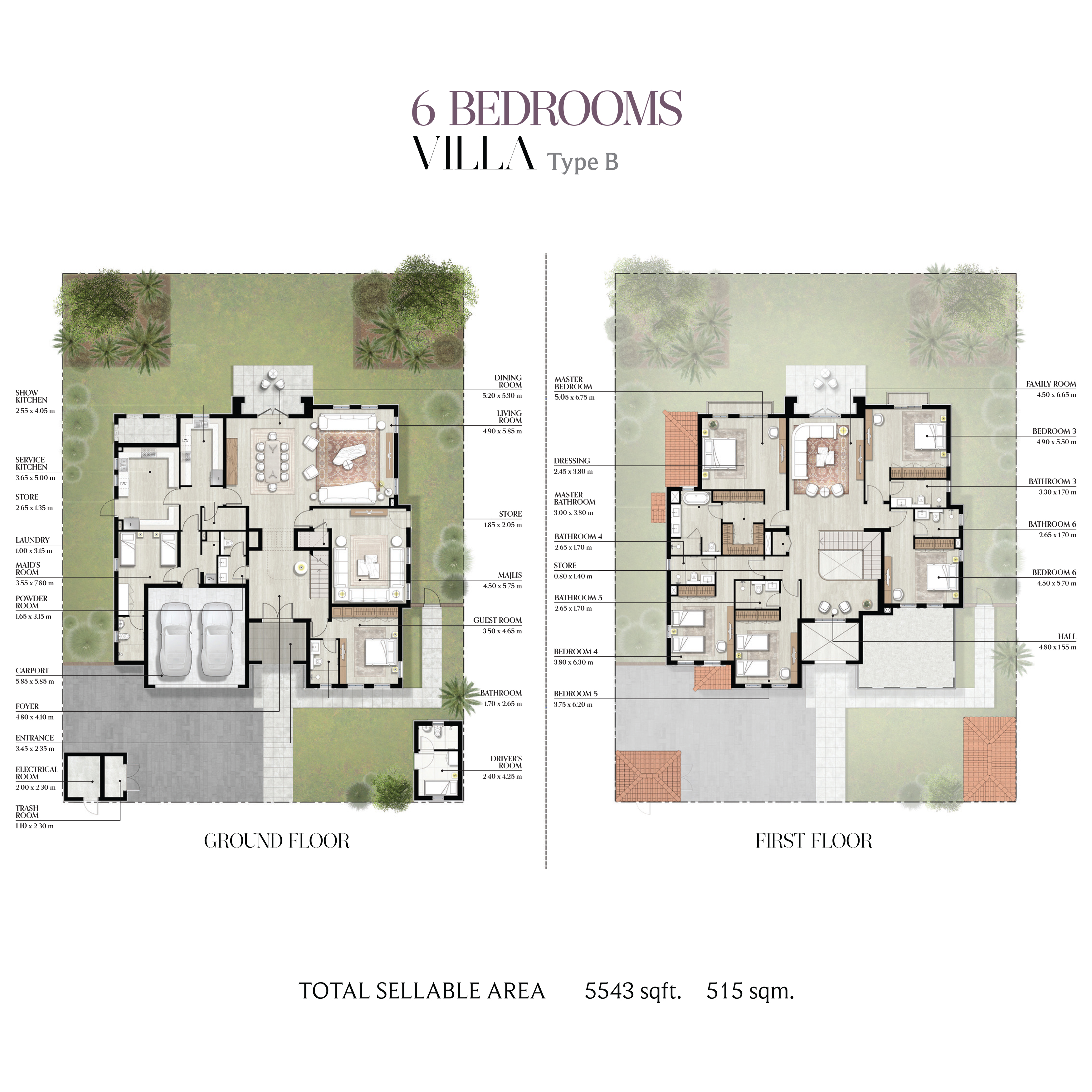 The property size in Bloom Living - Malaga 2734 - 5543 Sqft