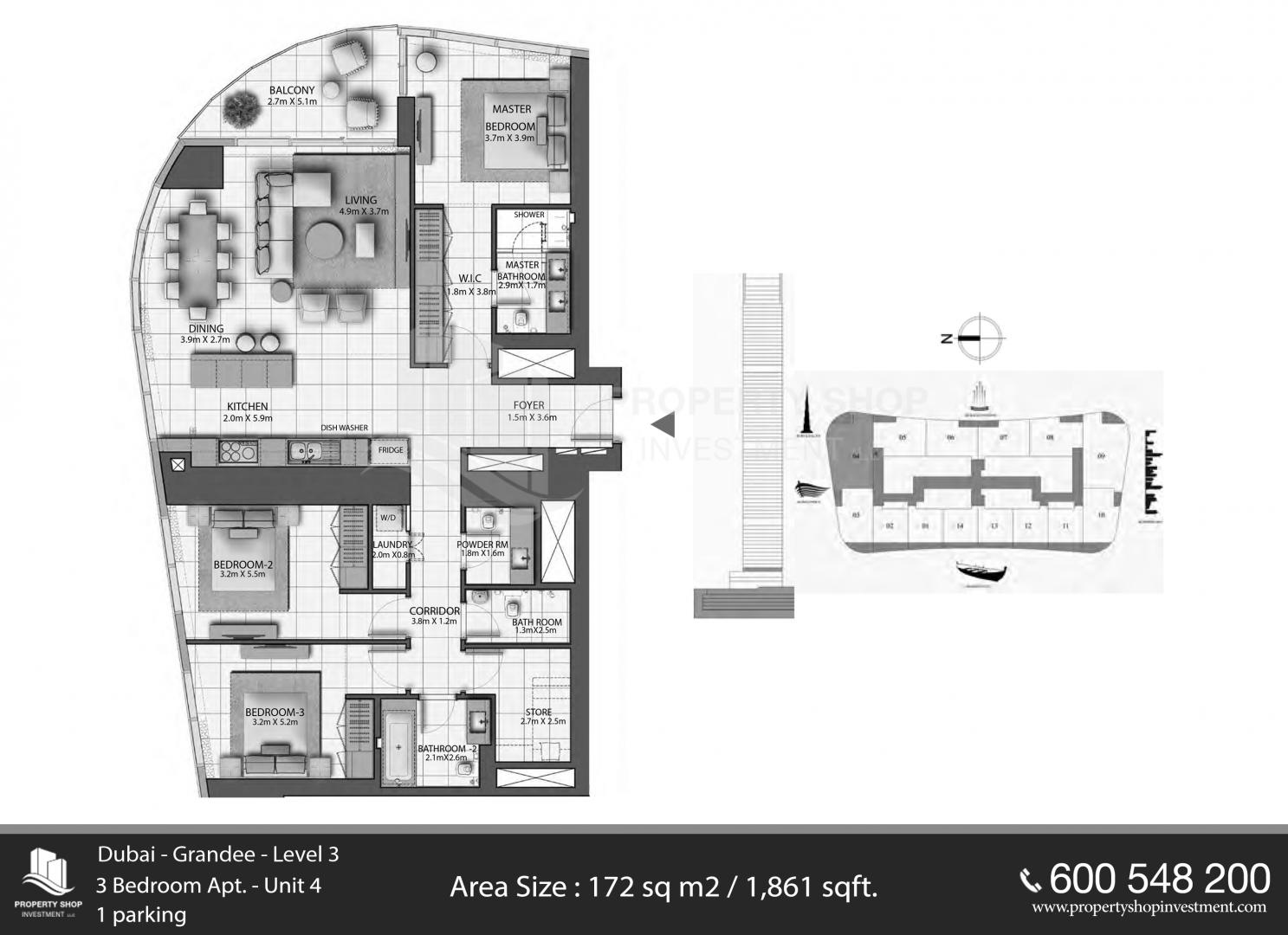 Floor plan of  The Grande 3 3 Beds 1861 - - 1 - 2