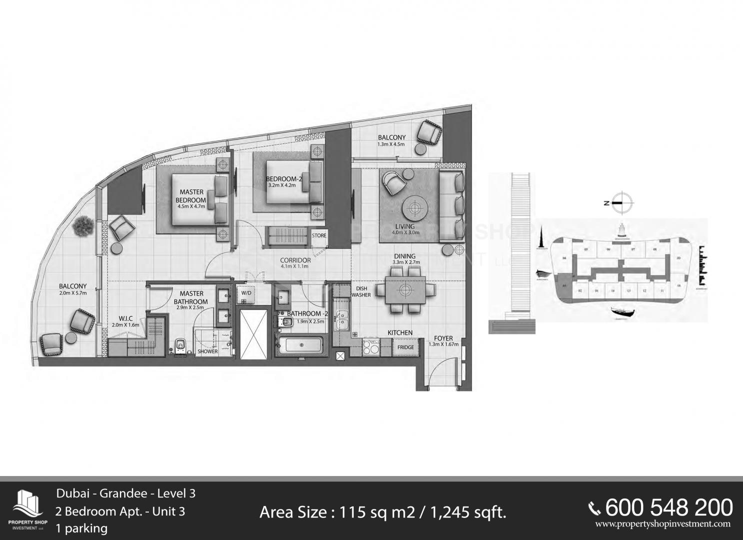 Floor plan of  The Grande 2 2 Beds 1245 - - - - 1