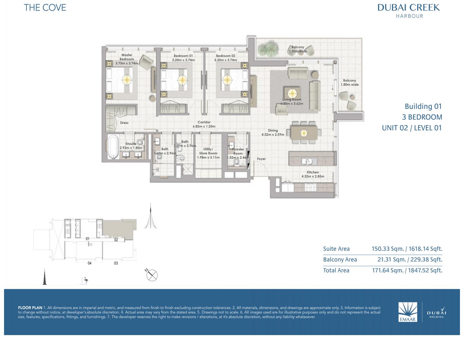 The cove a collection of generously appointed one, two and three-bedroom apartments on the banks of Creek Island. Positioned on the southern banks of Creek Island, overlooking the canal, The Cove is just minutes from the Dubai Creek Harbour mainland. Enjoying direct access to the island’s circular boulevard, it is a stone’s throw from Emaar Square, the new global retail destination. With Downtown Dubai and Dubai International Airport just 10 to 15 minutes away, it is an ideal base from which to explore your favourite attractions. Bathed in natural sunlight, The Cove’s apartments evoke a bright and uplifting atmosphere in the day. At night, the ambience shifts to a more romantic and elegant scene with the twinkling city lights and the glistening Dubai Creek Tower as its backdrop. Furnished with discreet fixtures and sophisticated finishes, the minimalistic designs and neutral hues add a refined touch of urban class to this waterfront haven.