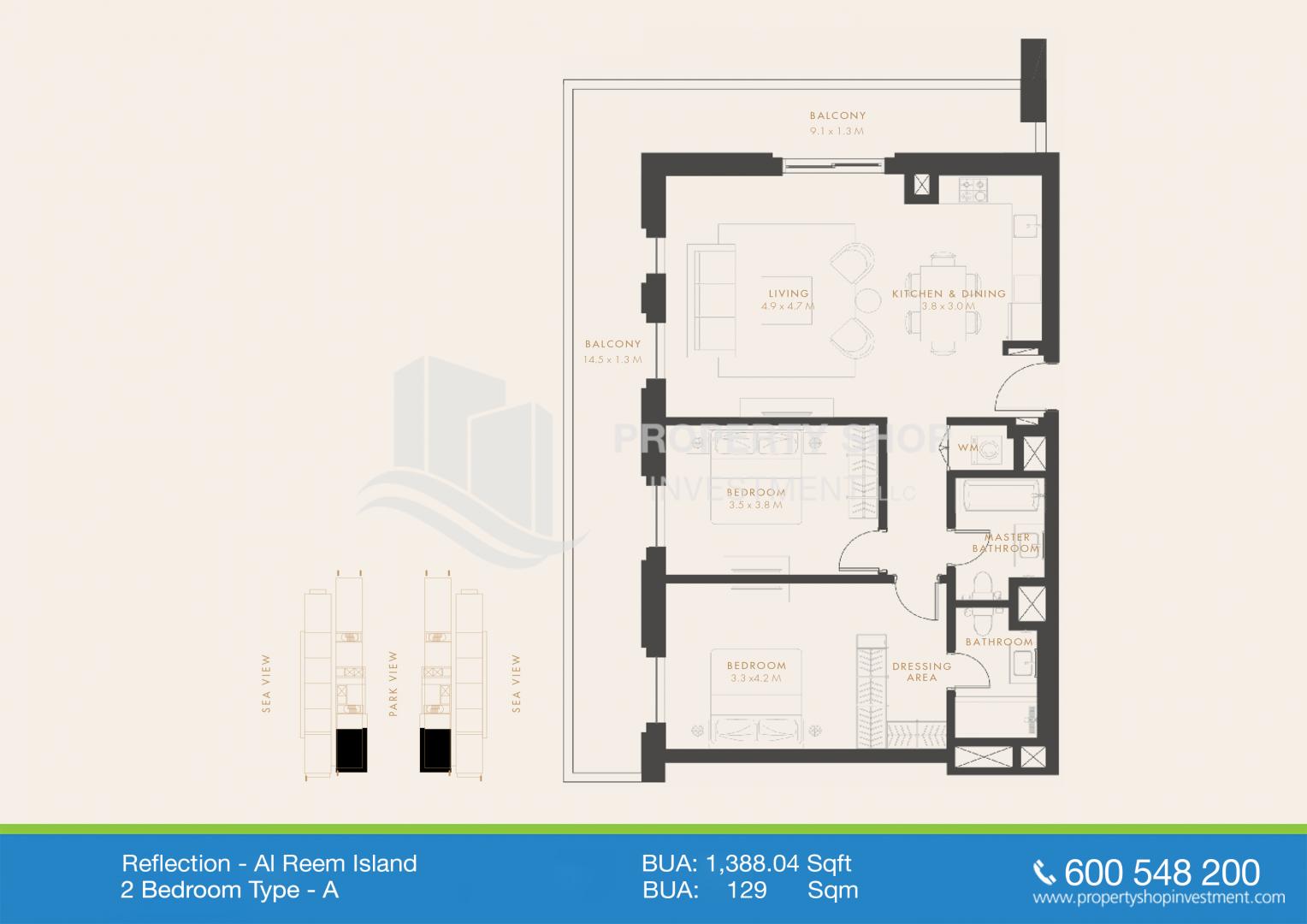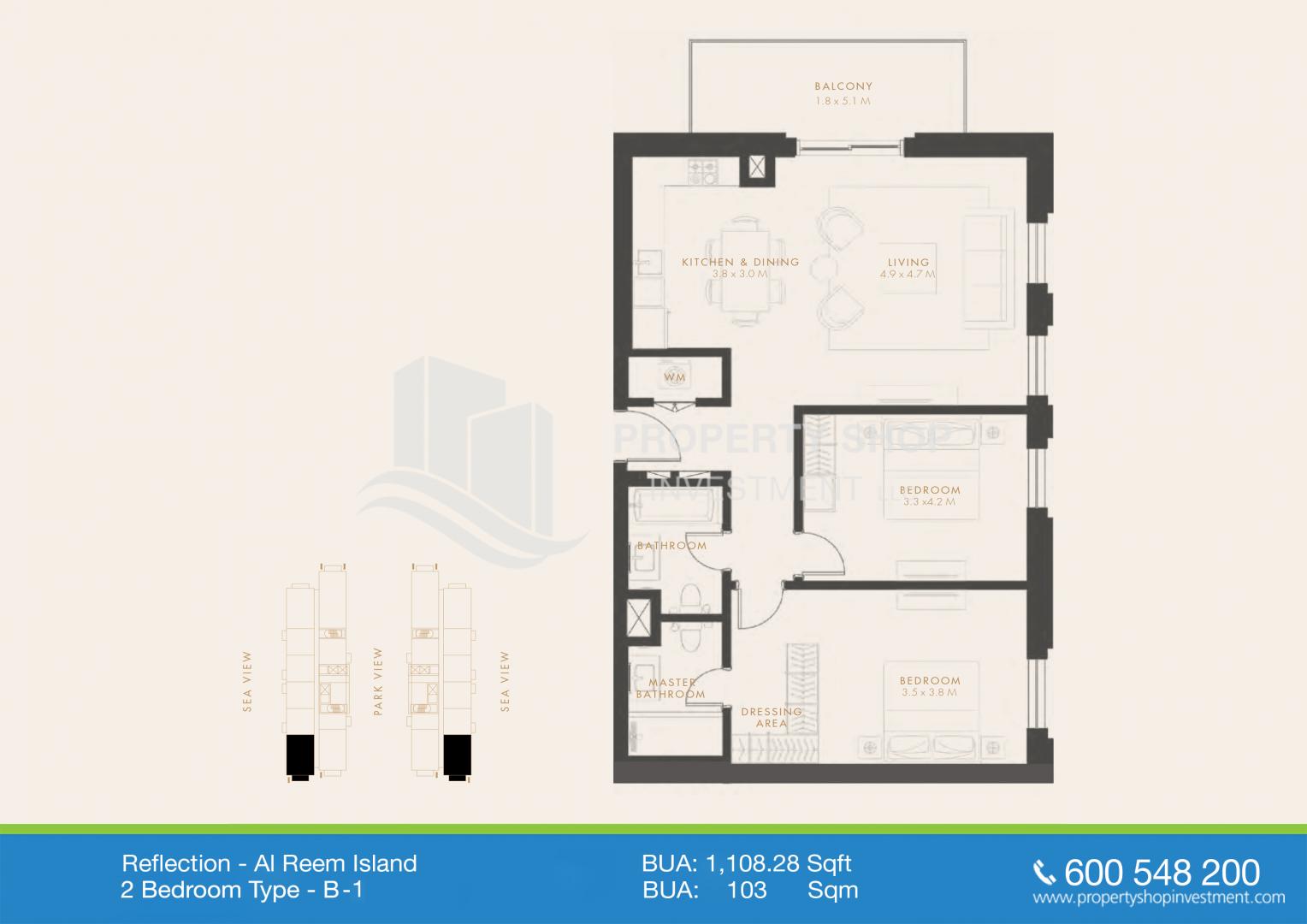 Appartamento | 3 | 3 | 1 | Vista della città | 1,571 mq | AP50952 | Reflection Tower A | Al Reem Island |