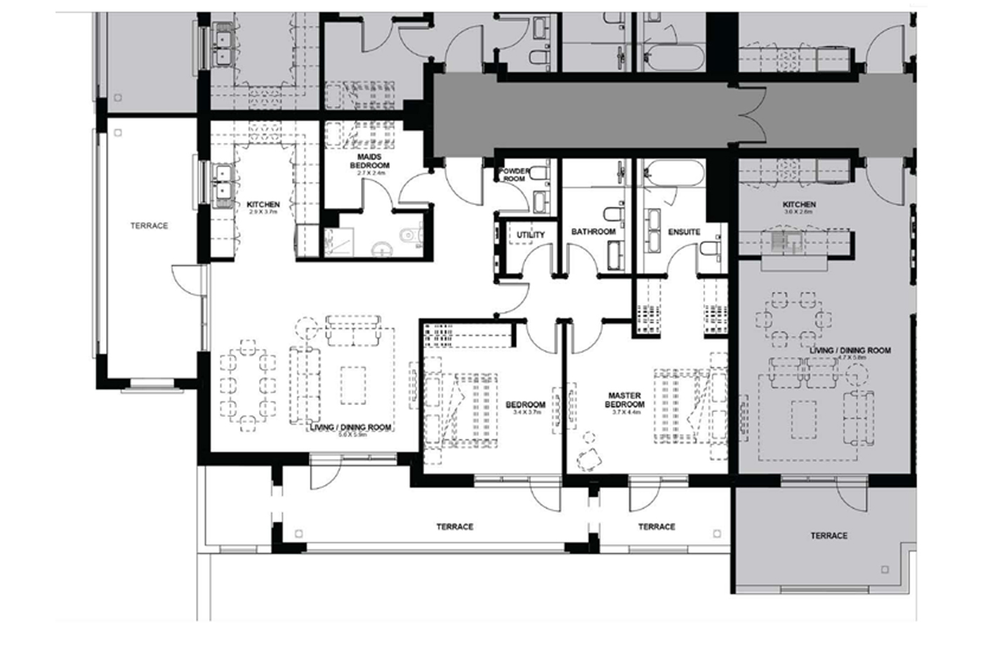 Floor plan of  Yas Golf Collection - Tower E 2 2BRM-Type-B-2A 1611.35 - 2 - - -
