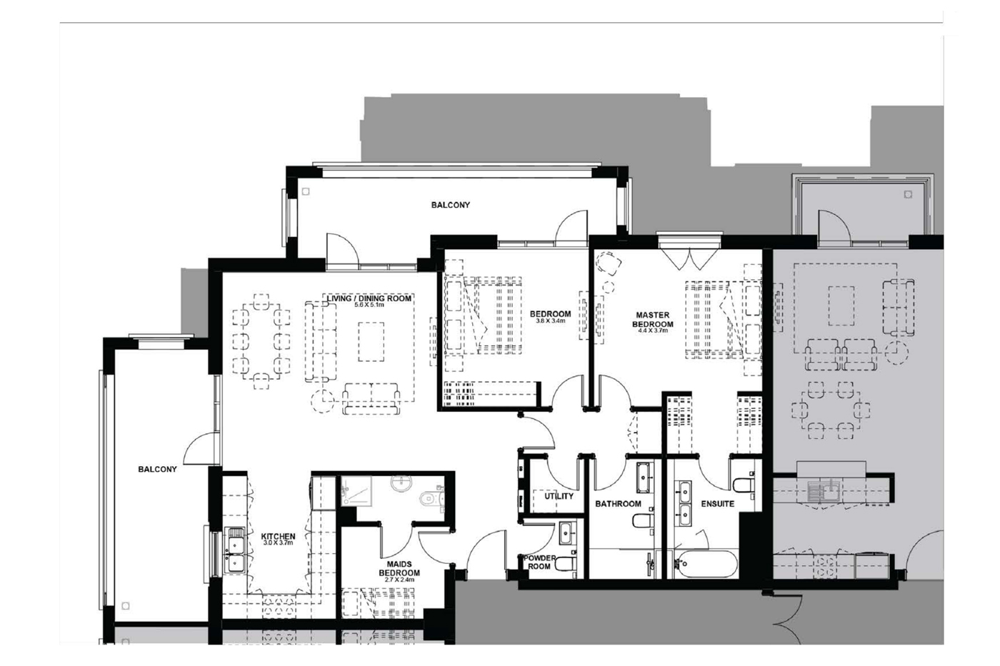 Floor plan of  Yas Golf Collection - Tower E 1 1BRM-Type-C-1 879.41 - 1 - - -