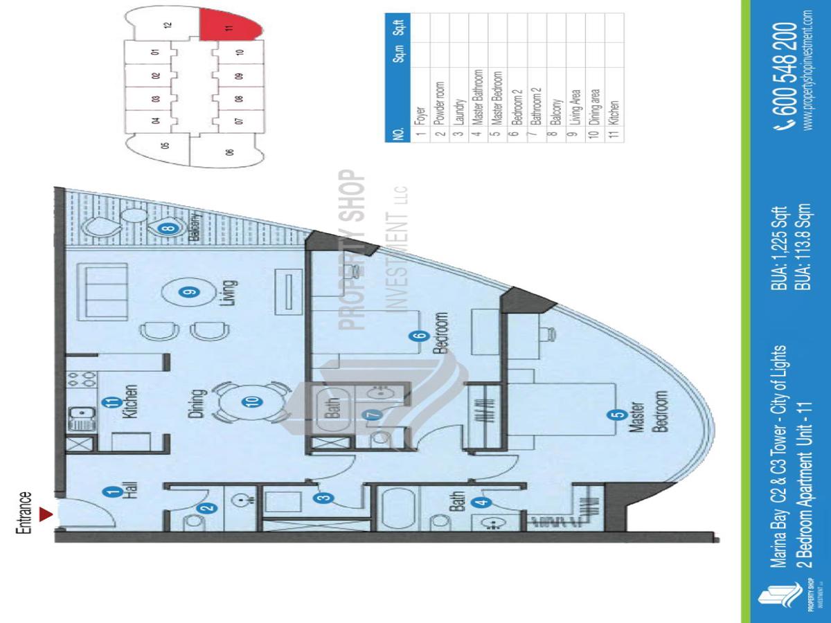Questo 2 Camera da letto Appartamento In Baia Marina ha le dimensioni di 1225 sq ft. Questa unità ha 2 Camera da letto, 3 bagni E 1 parcheggio.