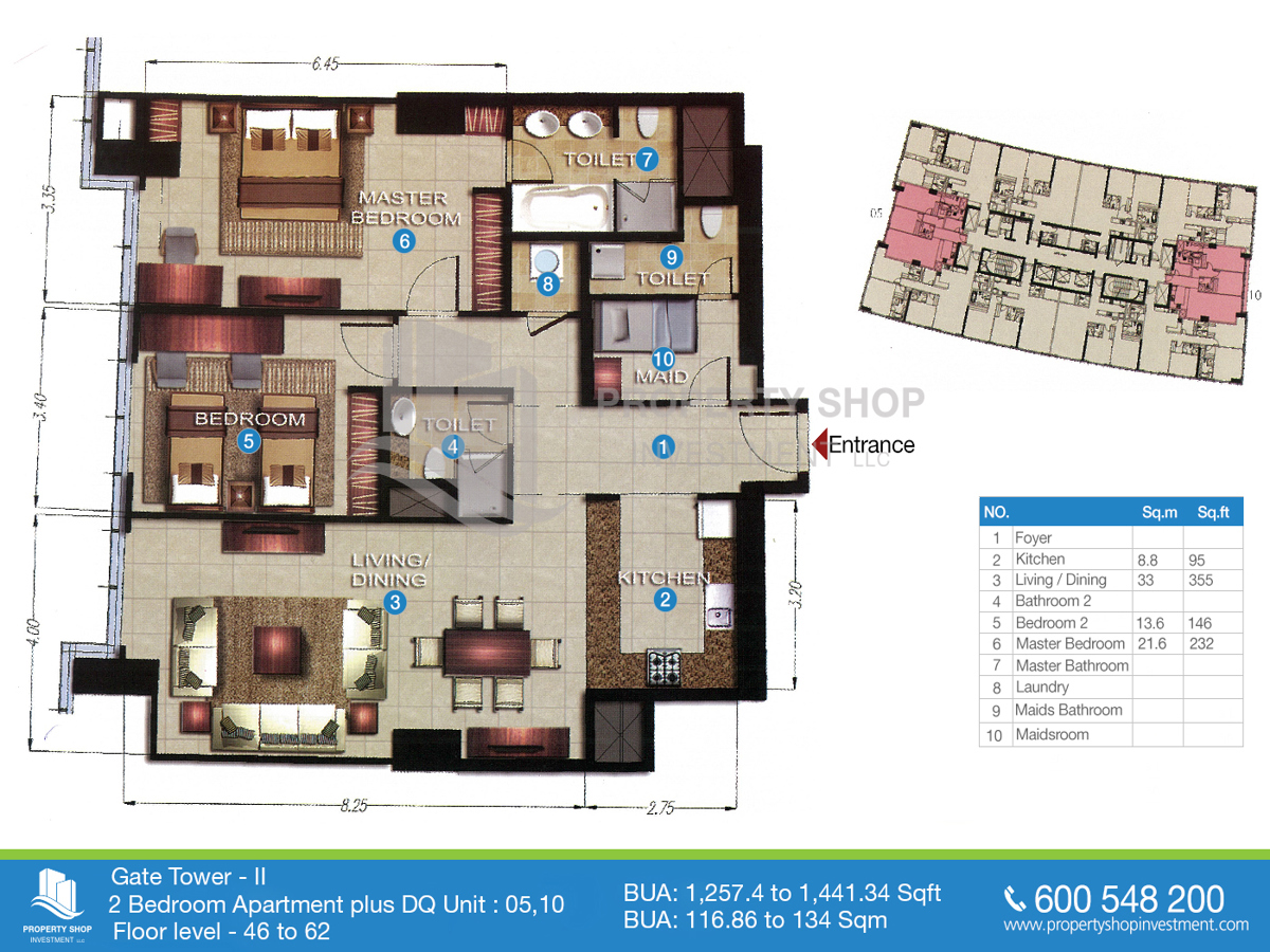 IL Appartamento disponibile in La torre della porta 2 Prezzo per mq È 86 AED.