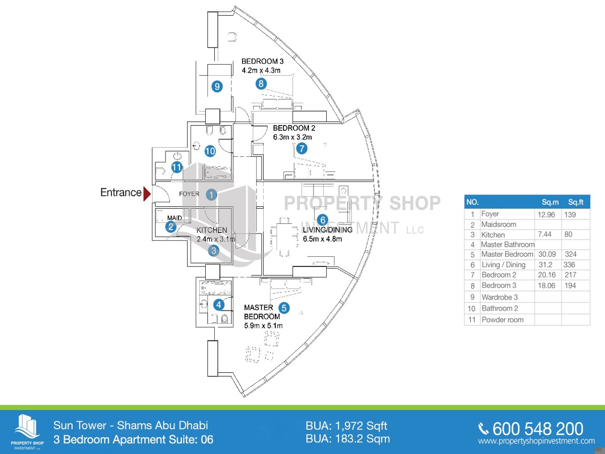 The Квартира доступно в Солнечная Башня Цена за кв.фут является 1779 AED.