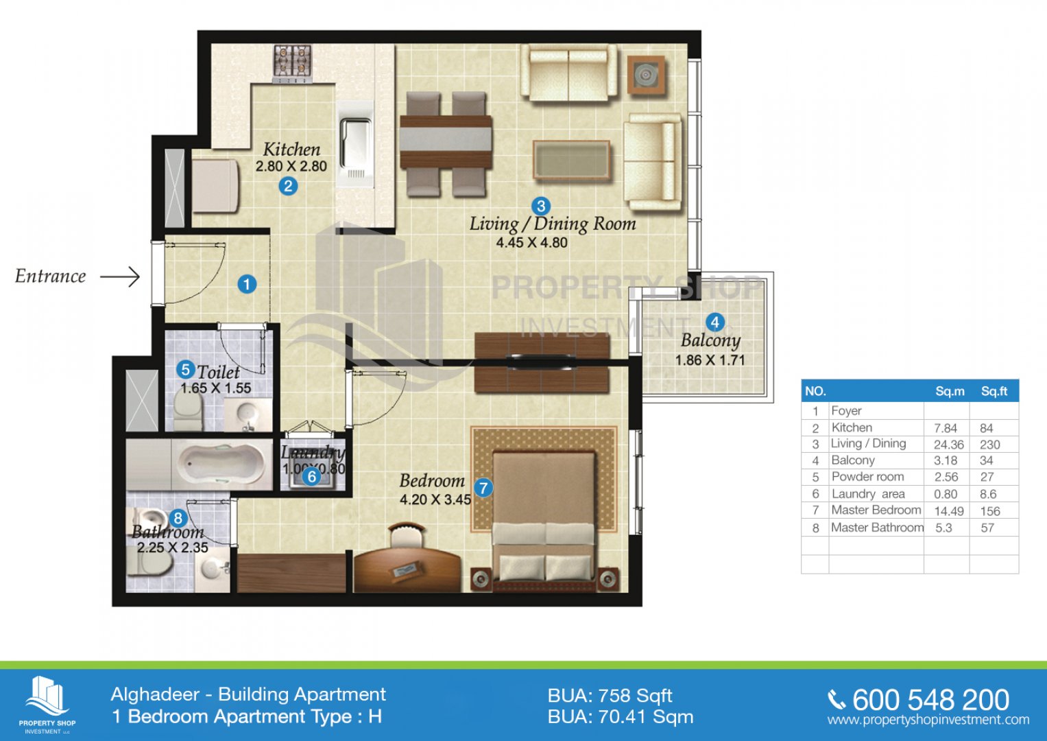 Apartments: 1, 2 and 3 bedrooms (ranging from 60 sqm to 150 sqm).