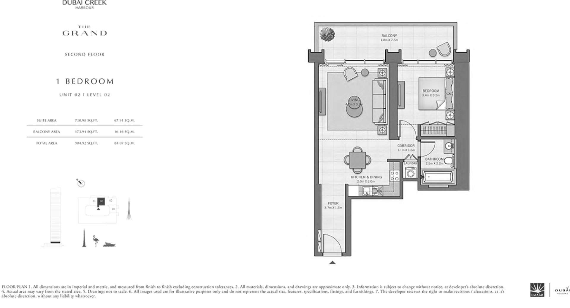 The Grand is situated near the heart of the dazzling Creek Island. Sitting strategically at the intersection of the waterfront between Creek Marina and the promenade, the skyscraper is a 10 to 15-minute drive to Downtown Dubai and Dubai International Airport.