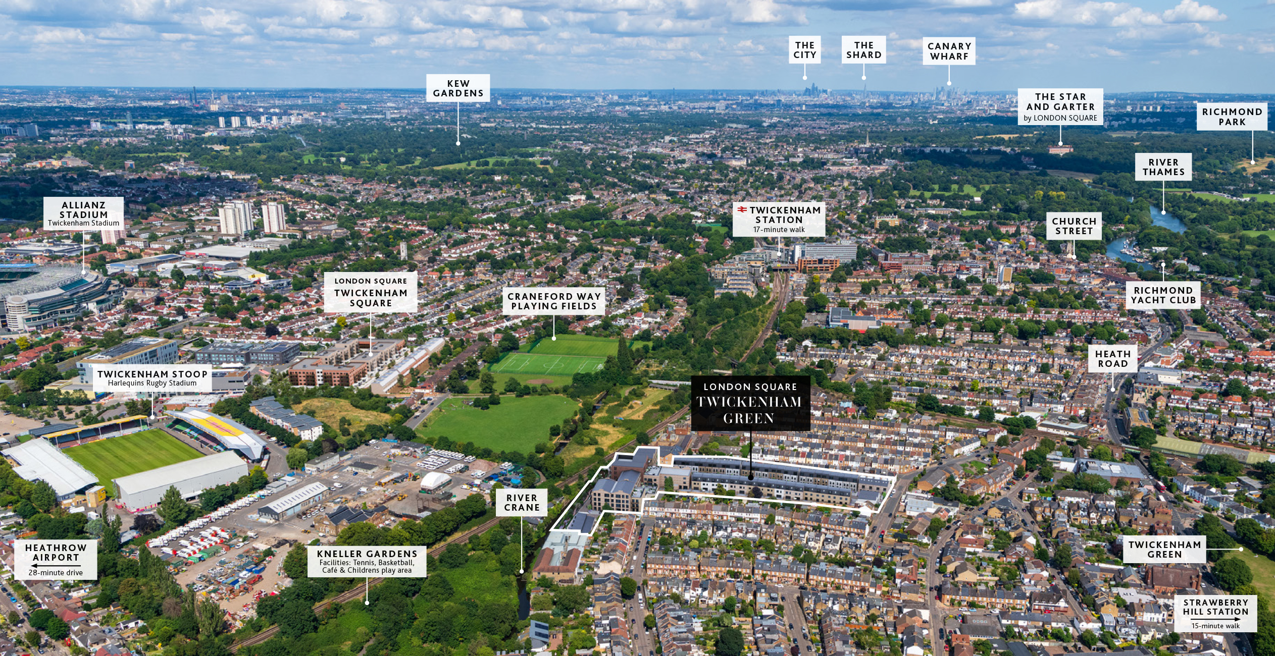 Twickenham Green is a residential development located in Twickenham, London, situated along the River Crane. It offers a mix of modern apartments and mews houses, providing a peaceful retreat in a suburban setting. Key Features: • Location: Twickenham, London • Property Types: 1, 2, and 3-bedroom apartments; 2, 3, and 4-bedroom mews houses • Amenities: Private outdoor spaces, communal gardens, dedicated car parking, EV charging • Nearby: Twickenham station (17-minute walk), River Crane, green spaces, family-friendly amenities Highlights: • Riverfront Setting: Enjoy the tranquil atmosphere and beautiful views of the River Crane. • Modern Design: The development features contemporary architecture and stylish interiors. • Community Focus: The communal spaces and family-friendly atmosphere create a strong... Read More