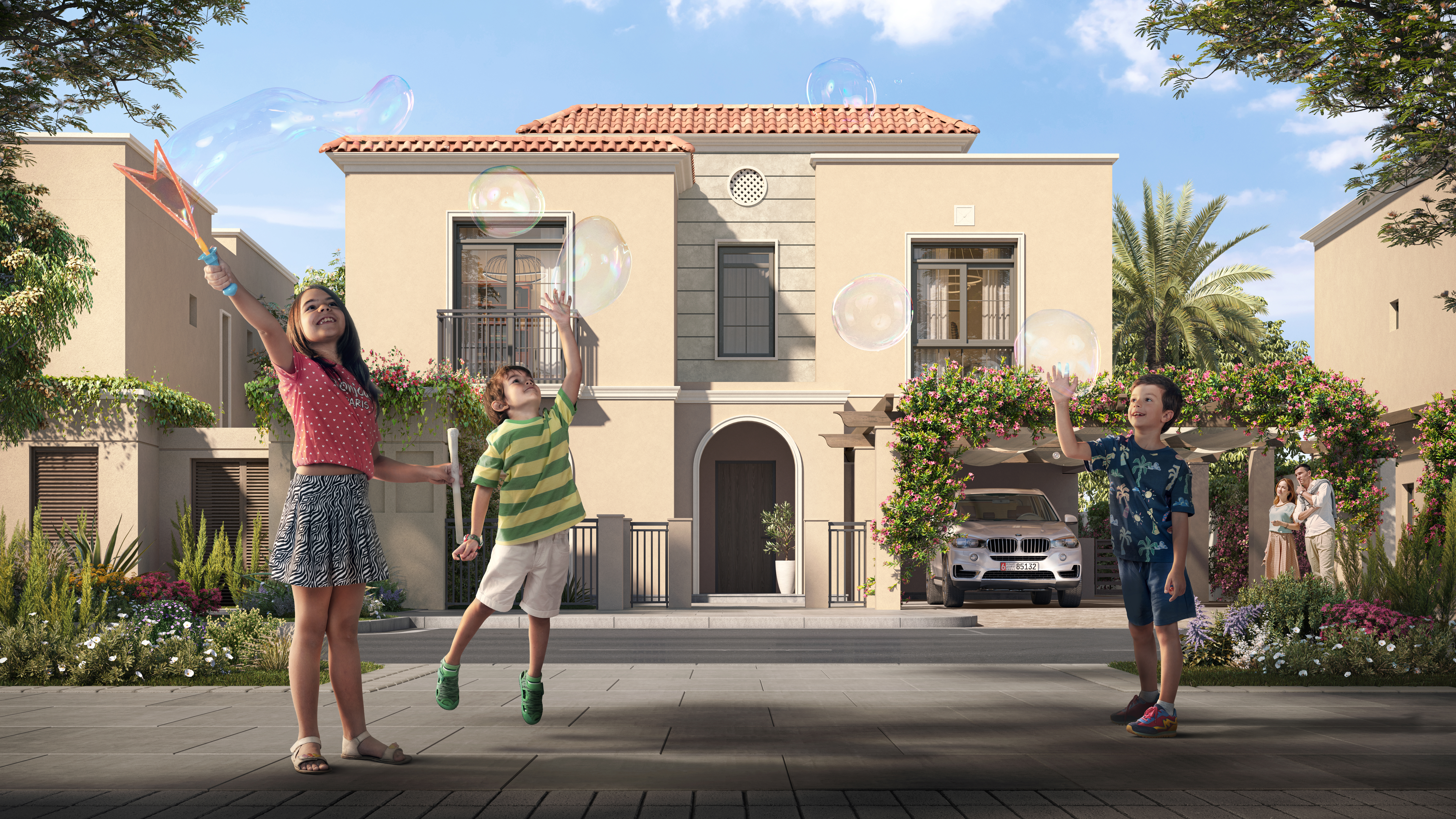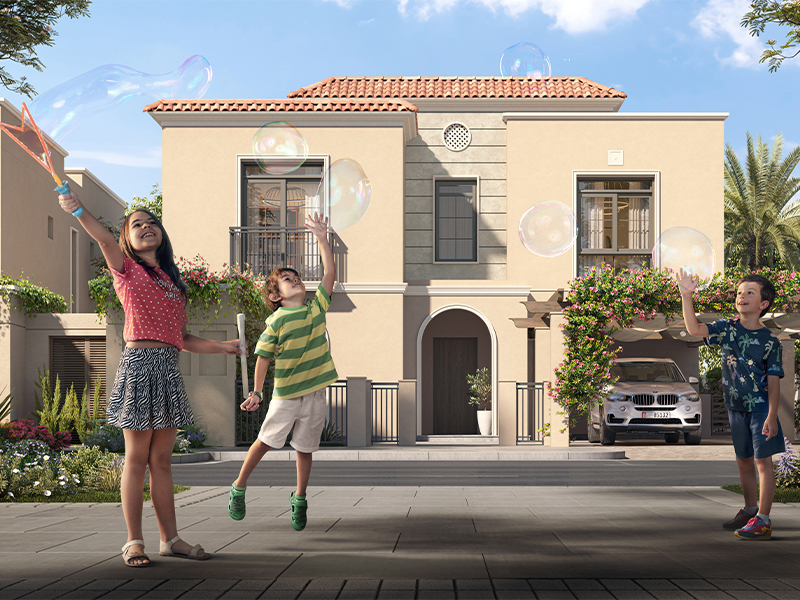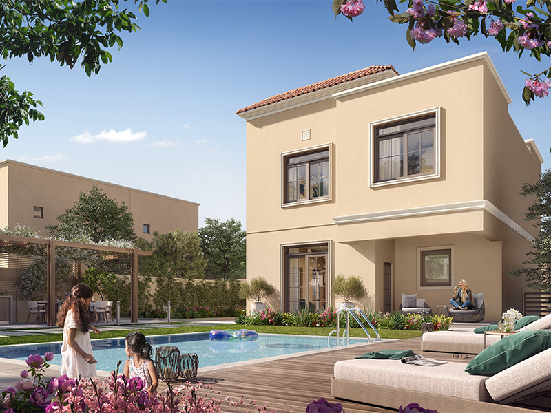 Yas Park Views, an exclusive collection of 341 villas situated on the vibrant Yas Island in Abu Dhabi. This Mediterranean-inspired haven blends classic architecture with contemporary interiors, creating an exquisite coastal living experience.