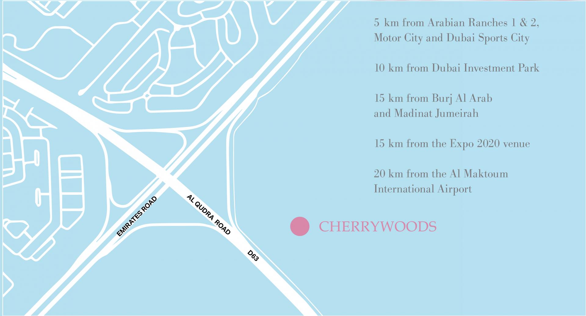 Located in Dubailand near Al Qudra Road, Cherrywoods townhouses by Meraas will offer residents a unique opportunity to live in world class community offering great amenities and properties at a reachable price starting AED 1.6M. Cherrywoods is an exclusive collection of 3 and 4 bedroom townhouse in a serene setting and a convenient location. Residents of cherrywood will live close to a number of fine dining restaurants, retail and other facilities. Cherrywood townhouses showcase modern interiors and exceptional design blended with superior finishes that has been a standard in all properties by Meraas. Being in close proximity to the established... Show More