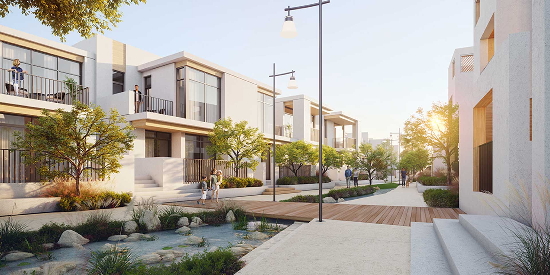 The development offers a collection of minimalist design townhouses meant for modern families, the residential units are laced with all the modern-day features and amenities to offer you great comfort. The flowing water streams across sikkas and multiple fountain plazas make this truly the first-ever waterfront destination... at Arabian Ranches 3.