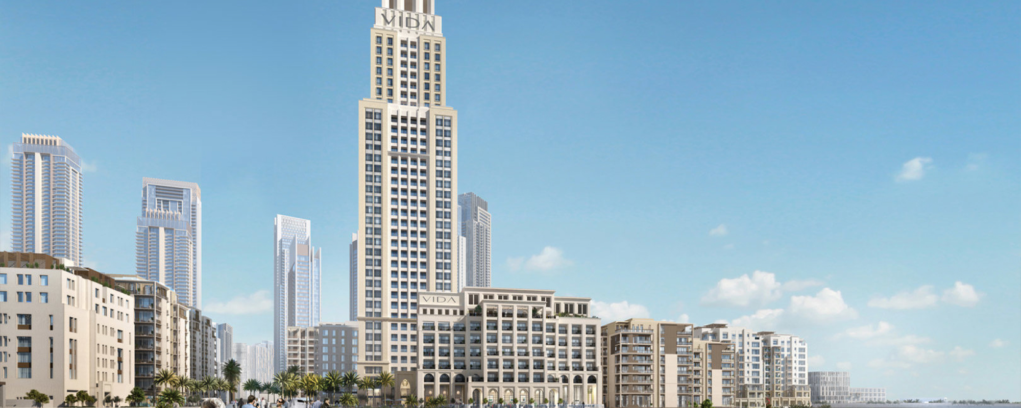 Vida Residences Creek Beach is a luxurious 33-story highrise tower, located in Ras al Khor, Dubai, adjacent to the award-winning Vida Hotel. The development offers 1, 2, and 3-bedroom apartments, with breathtaking views of Dubai Creek Tower, the Wildlife Sanctuary, Burj Khalifa, Creek Island, and the canal.