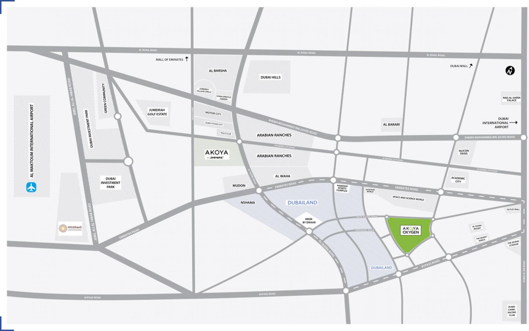 AKOYA Oxygen is a peaceful community conveniently located close to... major road networks and entertainment destinations. Just a few minutes from major business hubs and city centers, you can get anywhere with ease.