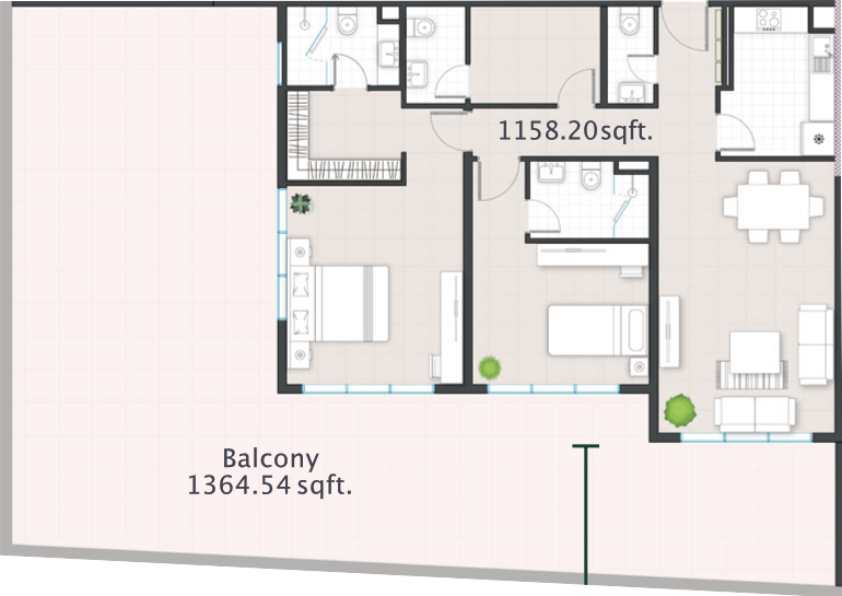 ✅ Balconies: 2 (1,364.97 sq.ft area)